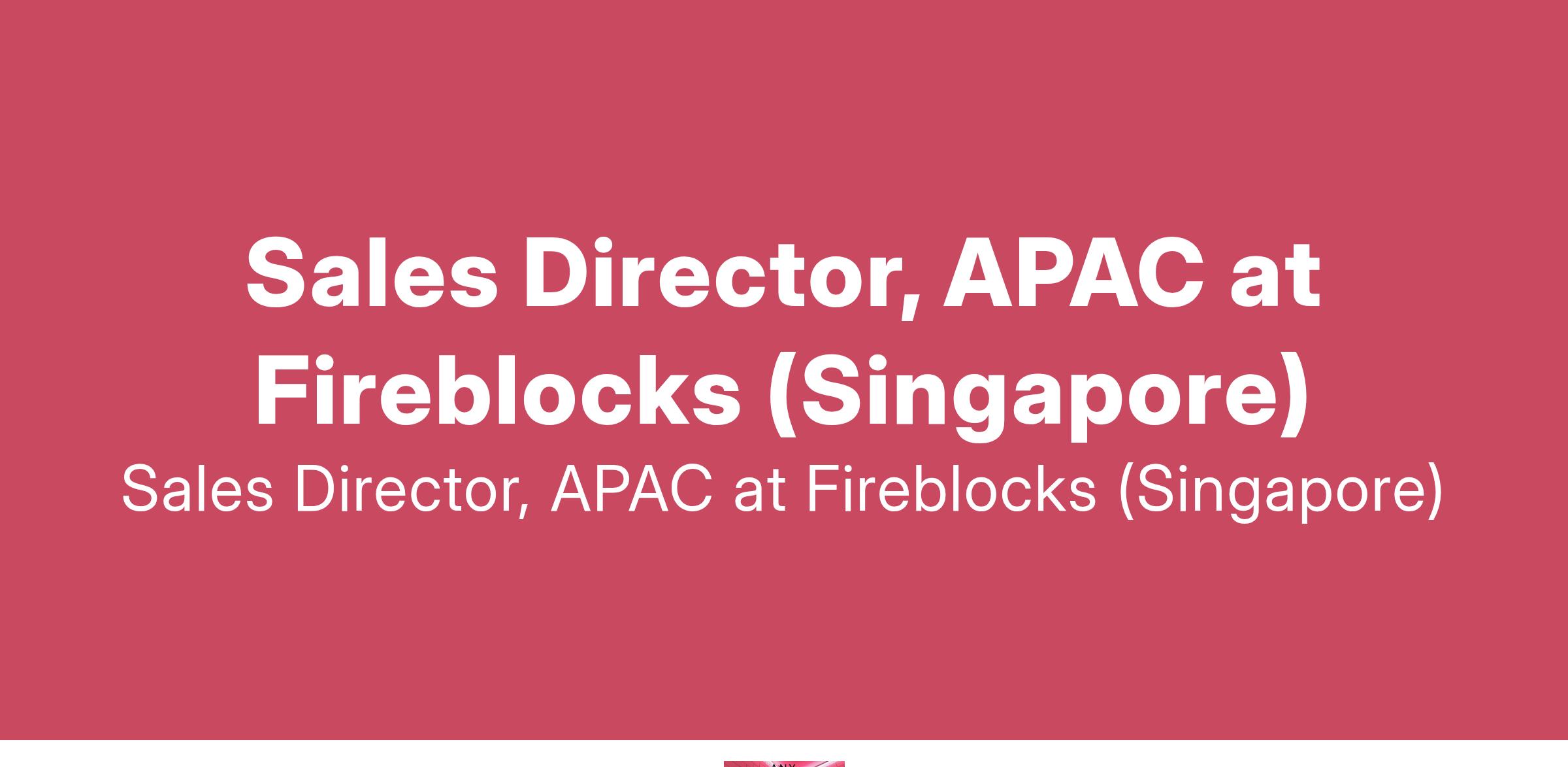 Sales Director, APAC at Fireblocks (Singapore)