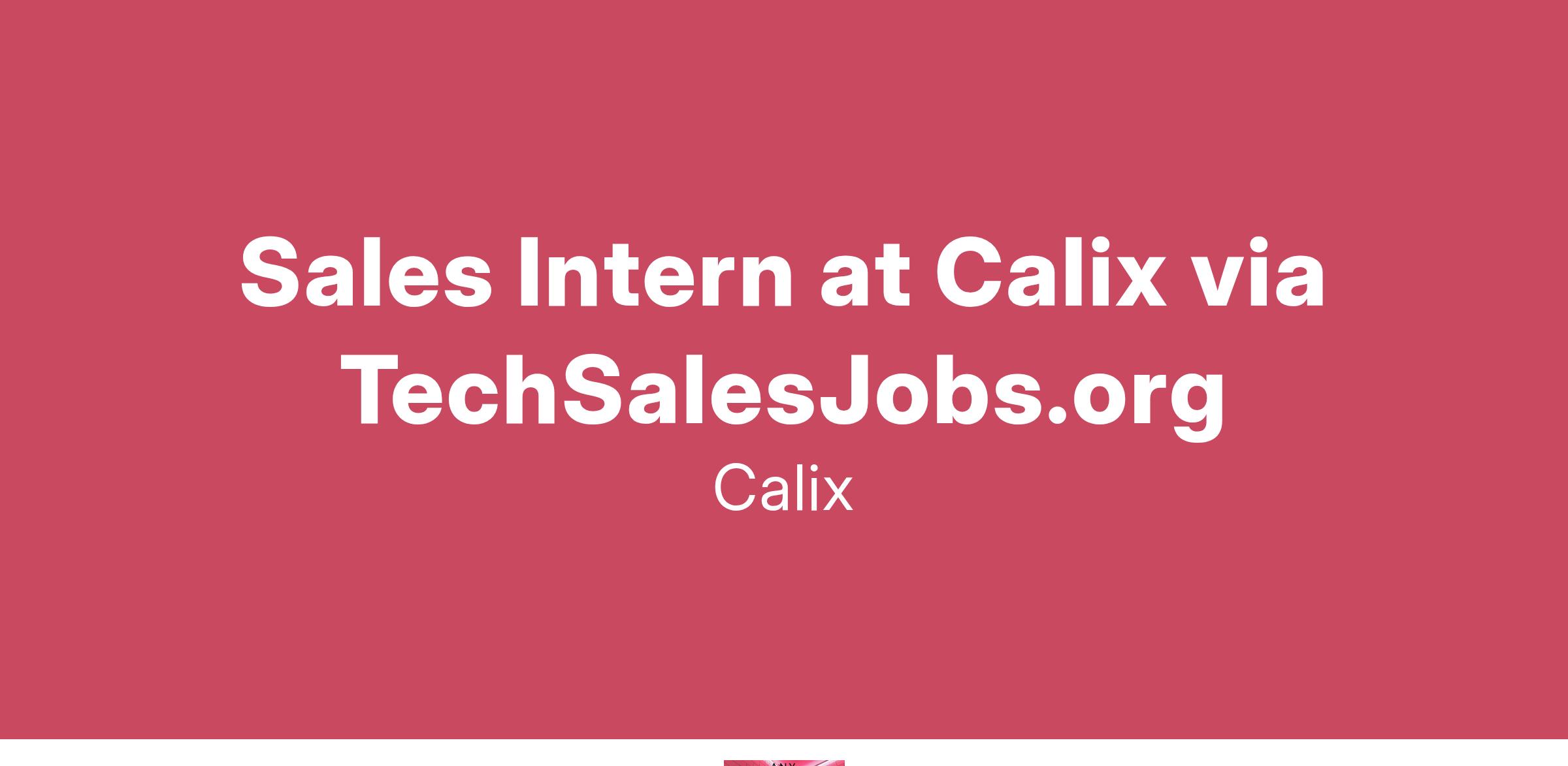 Calix is looking for a Sales Intern to join our Regionals East team for the Summer. You will be part of a unique program within the company which provides the opportunity to learn new skills through training and on the job learning. The duration of the progtam is expected to be 90 days.
