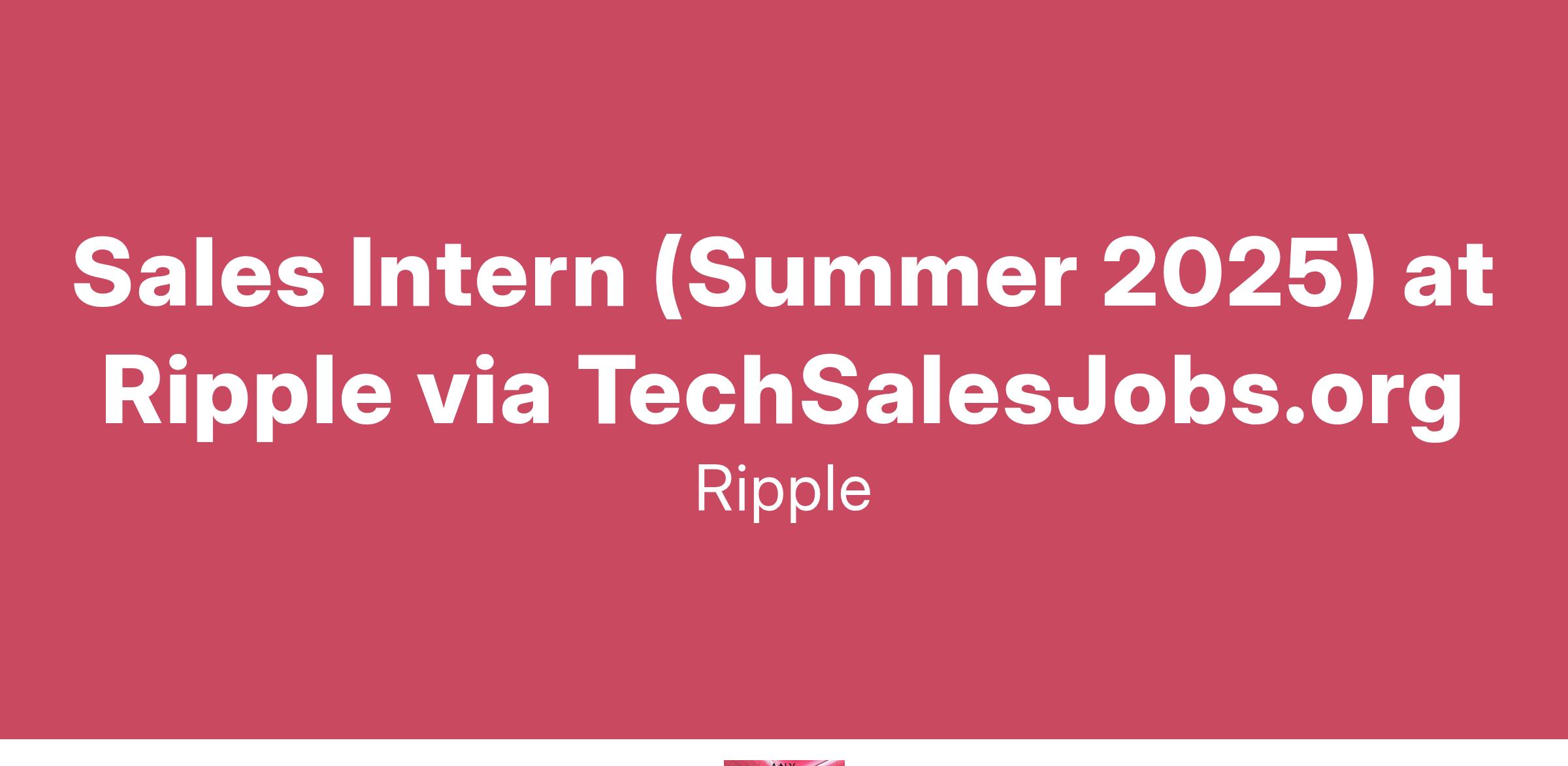 Sales Intern (Summer 2025) at Ripple via TechSalesJobs.org