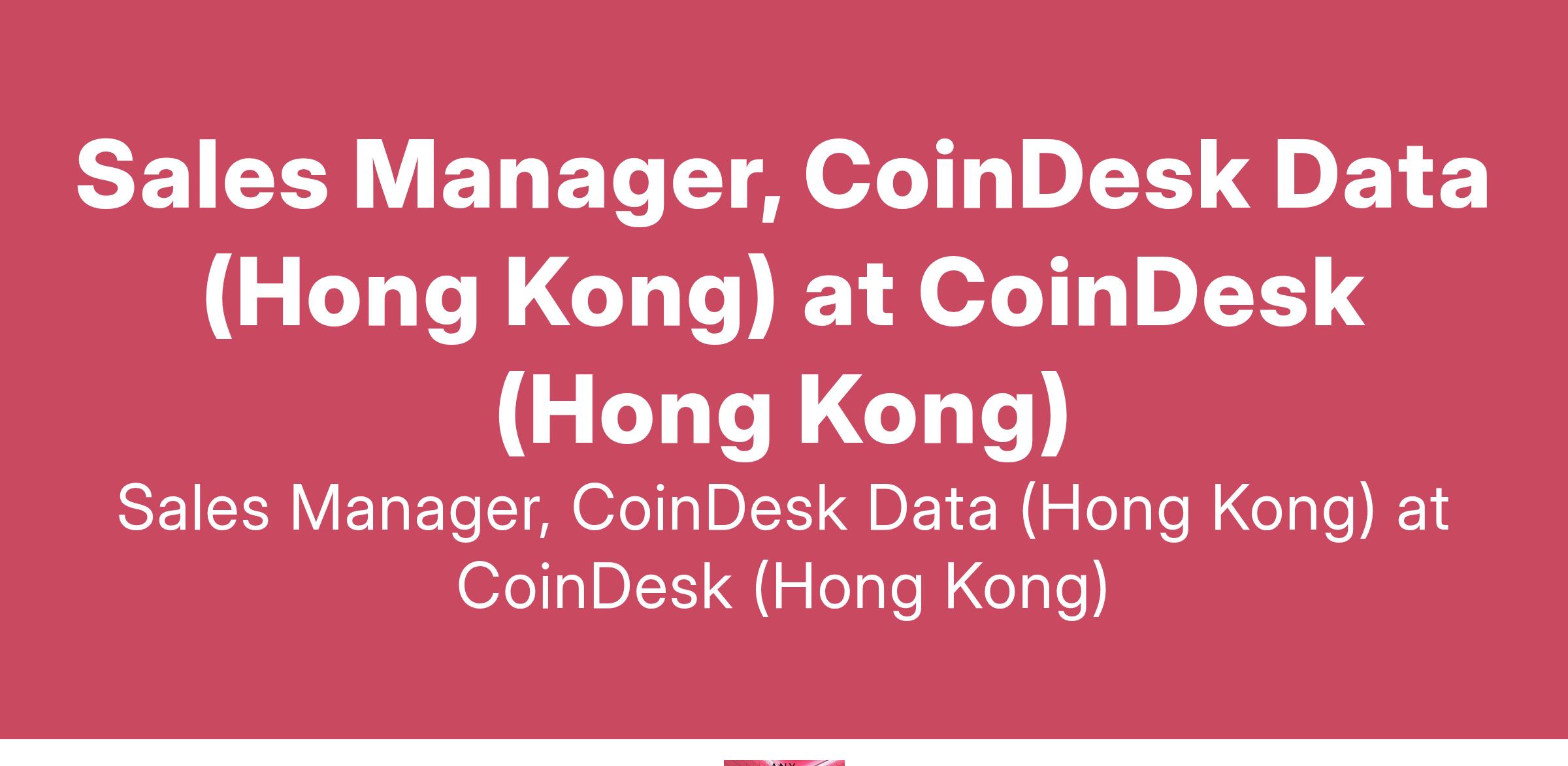 Sales Manager, CoinDesk Data (Hong Kong) at CoinDesk (Hong Kong)