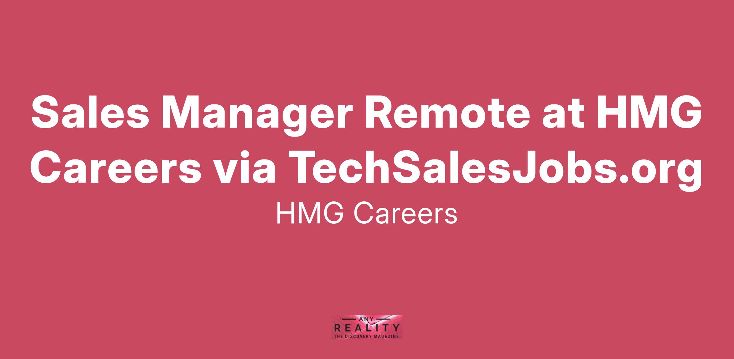Sales Manager Remote at HMG Careers via TechSalesJobs.org