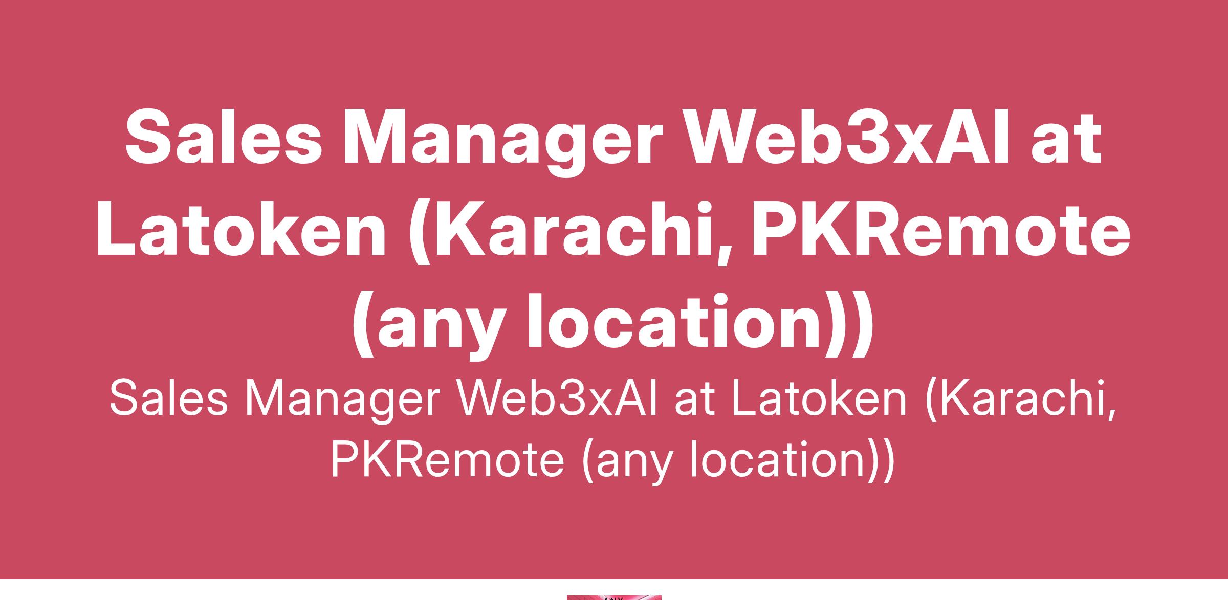 Sales Manager Web3xAI at Latoken (Karachi, PKRemote (any location))