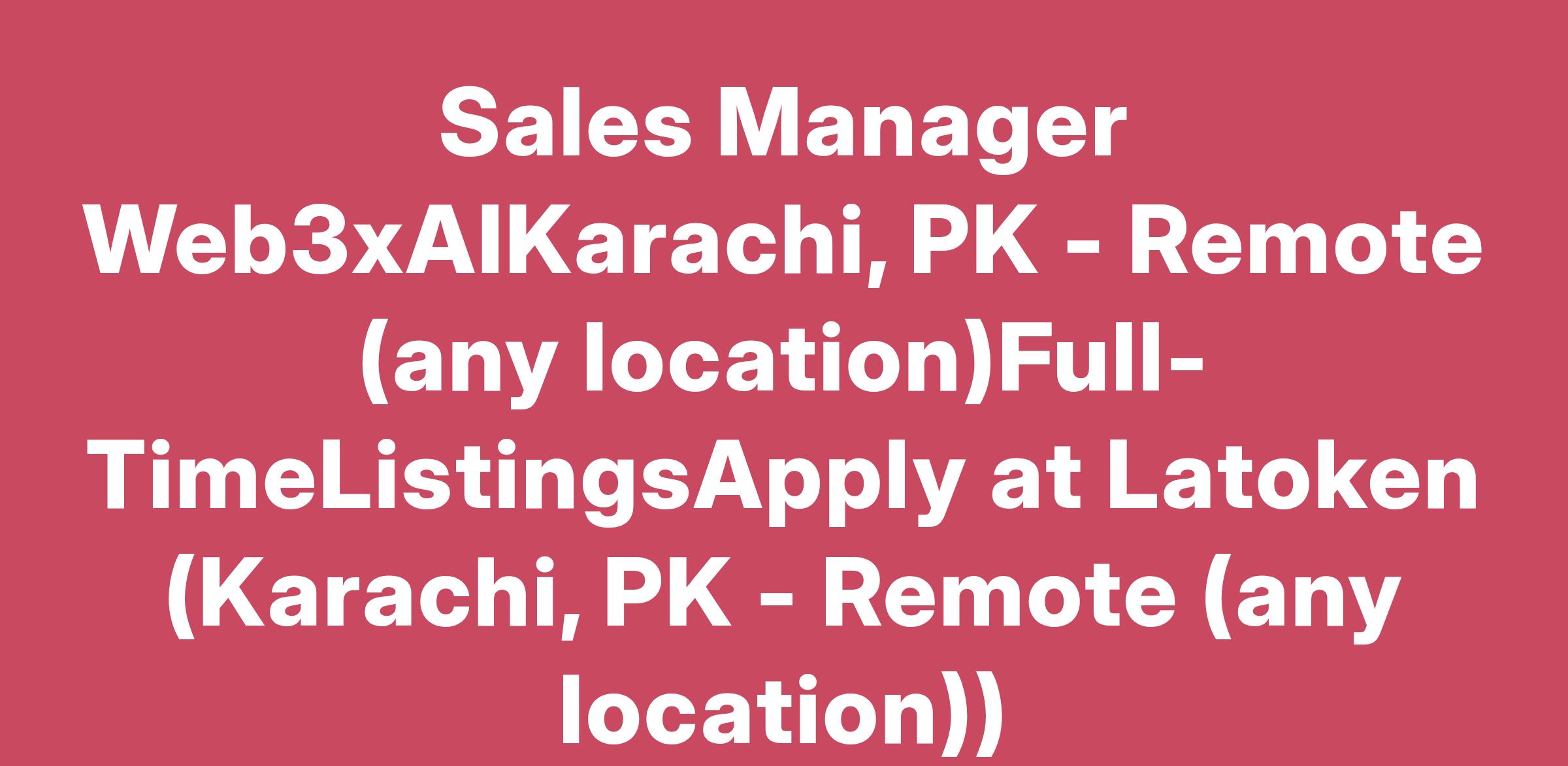 Sales Manager Web3xAIKarachi, PK - Remote (any location)Full-TimeListingsApply at Latoken (Karachi, PK - Remote (any location))