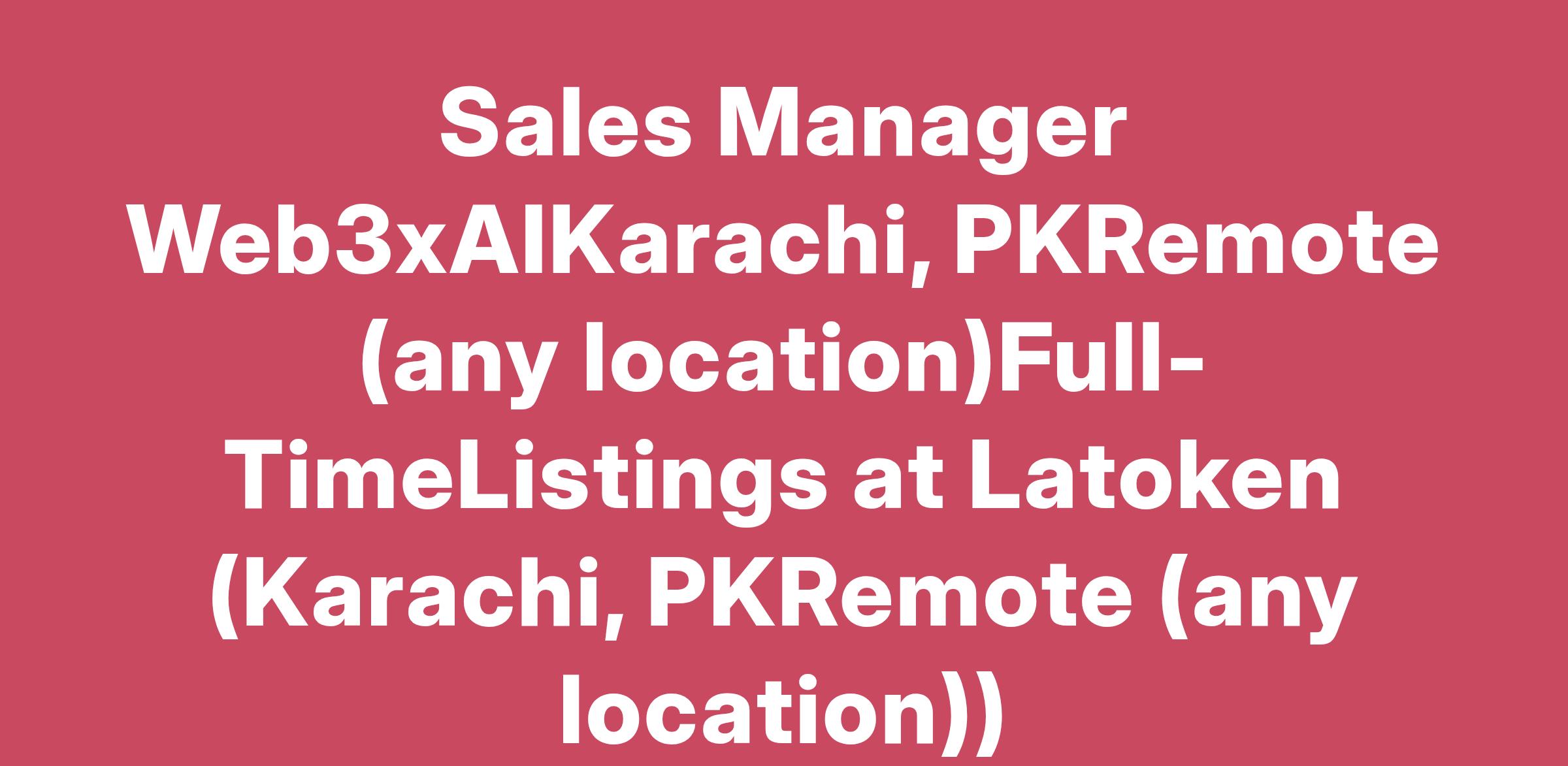 Sales Manager Web3xAIKarachi, PKRemote (any location)Full-TimeListings at Latoken (Karachi, PKRemote (any location))