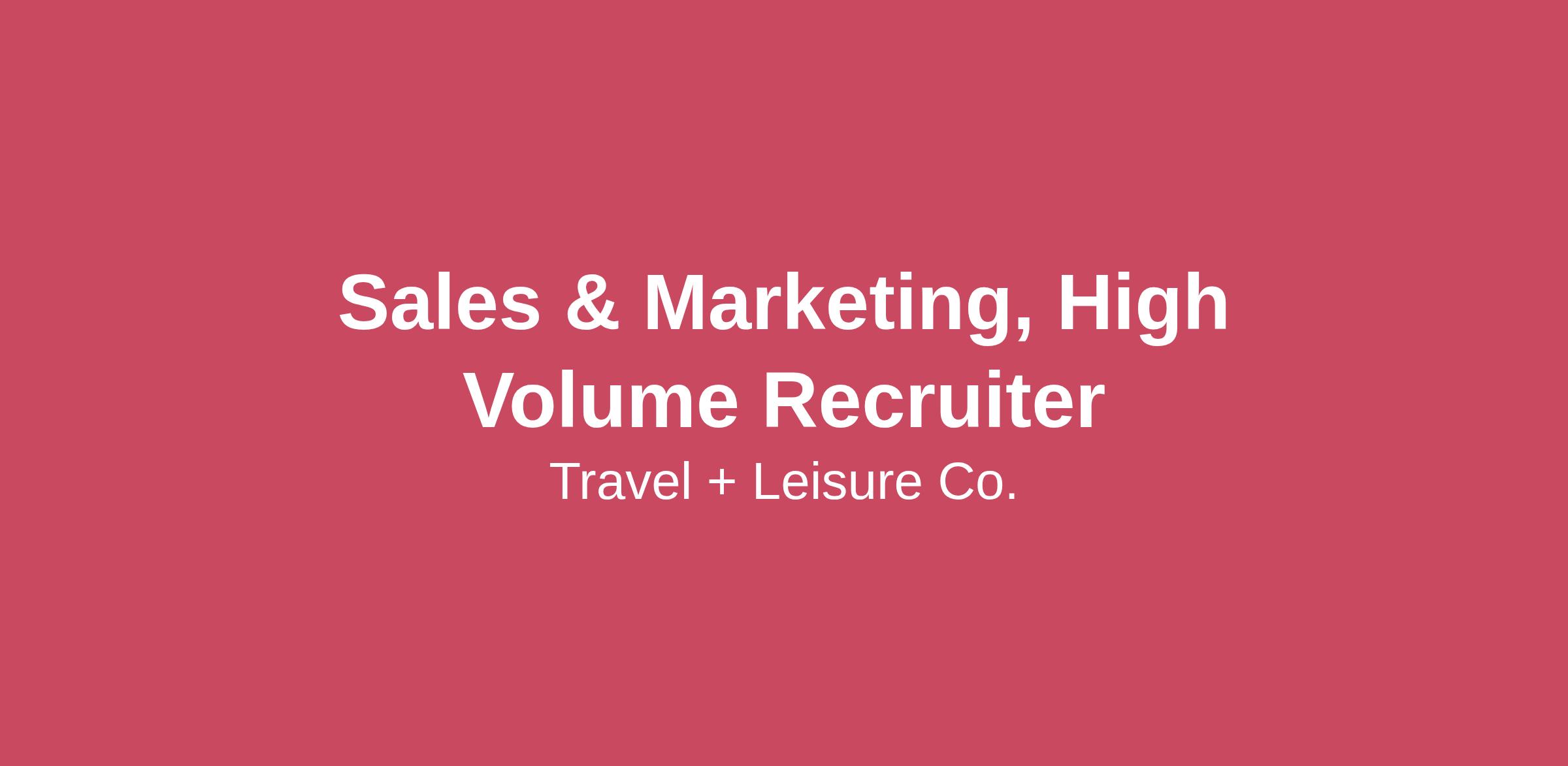 We Put the World on VacationTravel + Leisure Co. is the world’s leading vacation ownership and travel membership company, with a dynamic and growing portfolio of resort, travel club, and lifestyle travel brands. Our dedicated associates help the company achieve its mission to put the world on vacation. Innovation and growth keep our work interesting and fun. Every day is a chance to learn something new and turn vacation inspiration into exceptional experiences for millions of travelers worldwide.A successful high volume sales recruiter will effectively drive and manage the full life cycle recruiting process, including creating requisitions, job postings, and moving candidates through our applicant tracking systems, to attract top talent in a timely and cost-effective manner. This individual will strategically source, identify, screen, and refer quality applicants to our hiring leaders. They will also maintain internal job postings, referrals, and records within the ATS.How You'll Shine:Responsibilities include, but are not limited to:Exceed all recruiting metrics that include, but are not limited to, sourcing, interviewing, hiring and maintain compliance with posting requirements and background checksConsistently document and report weekly/monthly/quarterly metrics on all programsFocuses on building relationships with hiring managers, create a strong partnership, effectively understand their business, team dynamics and business goalsBuild recruiting brand for advertising and sourcing by setting standards and developing a site sourcing library of creative visual collateralWork closely with hiring managers and trainers to ensure corporate hiring processes are being trained, followed and executed on appropriatelyManage area recruiting networking projects for contributing and collecting best practices for distribution to all sitesEstablish and implement a yearly recruiting action plan, including budgeting and compensation parametersPartner with other recruiters to exchange best practices and maintain region wide objectionsHelp create and engage in recruiting media campaigns including methods, content and distribution within budget at needed**Only Candidates within 50 Miles of the Orlando area will be considered at this time**What You'll Bring:EducationA bachelor’s degree in human resources, Business Administration, Communications, Psychology, or a related field.Knowledge and Skills Ability to source "passive" candidates via direct sourcingStrong written and verbal communication skillsStrong presentation skillsDemonstrated success in proactive recruiting, sourcing, presentation, interviewing, negotiating and networking skillsAble to manage and execute on multiple recruitment plans, assignments and implement strategy in a fast paced environmentAble to work collaboratively with others and communicate effectively to all levels including executiveMust possess a strong professional presence and confidence with a high level of confidentialityDemonstrated flexibility, adaptability and ability to handle pressureAbility to influence and work within matrix organizationAbility to work nights and weekends occasionally as neededTechnical SkillsProficient in Microsoft Office including MS ExcelExperience with Applicant Tracking Systems (preferably Workday)Job Experience 3+ years of full life cycle recruiting, sales/marketing, or equivalent experience is requiredAgency/Search firm experience preferredSales/Marketing Recruitment experience is a plusExperience equivalent to the education requirement may be accepted in lieu of the education requirement.How You'll Be Rewarded:We offer a diverse range of comprehensive health and welfare benefits to associates who work 30 or more hours per week to meet your needs and support you throughout your career with us. Travel + Leisure Co. benefits include: Note: Temporary and/or seasonal associates are ineligible for Paid Time Off. MedicalDentalVisionFlexible spending accountsLife and accident coverageDisabilityDepending on position, paid time off, parental leave and holidays (speak to your recruiter for additional information)Wish day paid time to volunteer at an approved organization of your choice401k with employer match (subject to eligibility requirements, including tenure - speak to your recruiter for additional information)Legal and identify theft planVoluntary income protection benefitsWellness program (subject to provider availability)Employee Assistance ProgramWhere Memories Start with YouHospitality is at the heart of all we do at Travel + Leisure Co. Here, you’ll find an inclusive environment where we deliver excellence and take time to have fun, celebrate together, and support one another. We're always looking ahead to what’s next and how we can strengthen our business, its neighboring communities, and the customer experience. Join our global team and build a career where memories start with you.We are an equal opportunity employer, and all applications will be considered for employment without attention to their membership in any protected class. If you require any reasonable accommodation to complete your application or any part of the recruiting process, please email your request to MyCareer@travelandleisure.com, including the title and location of the position for which you are applying.