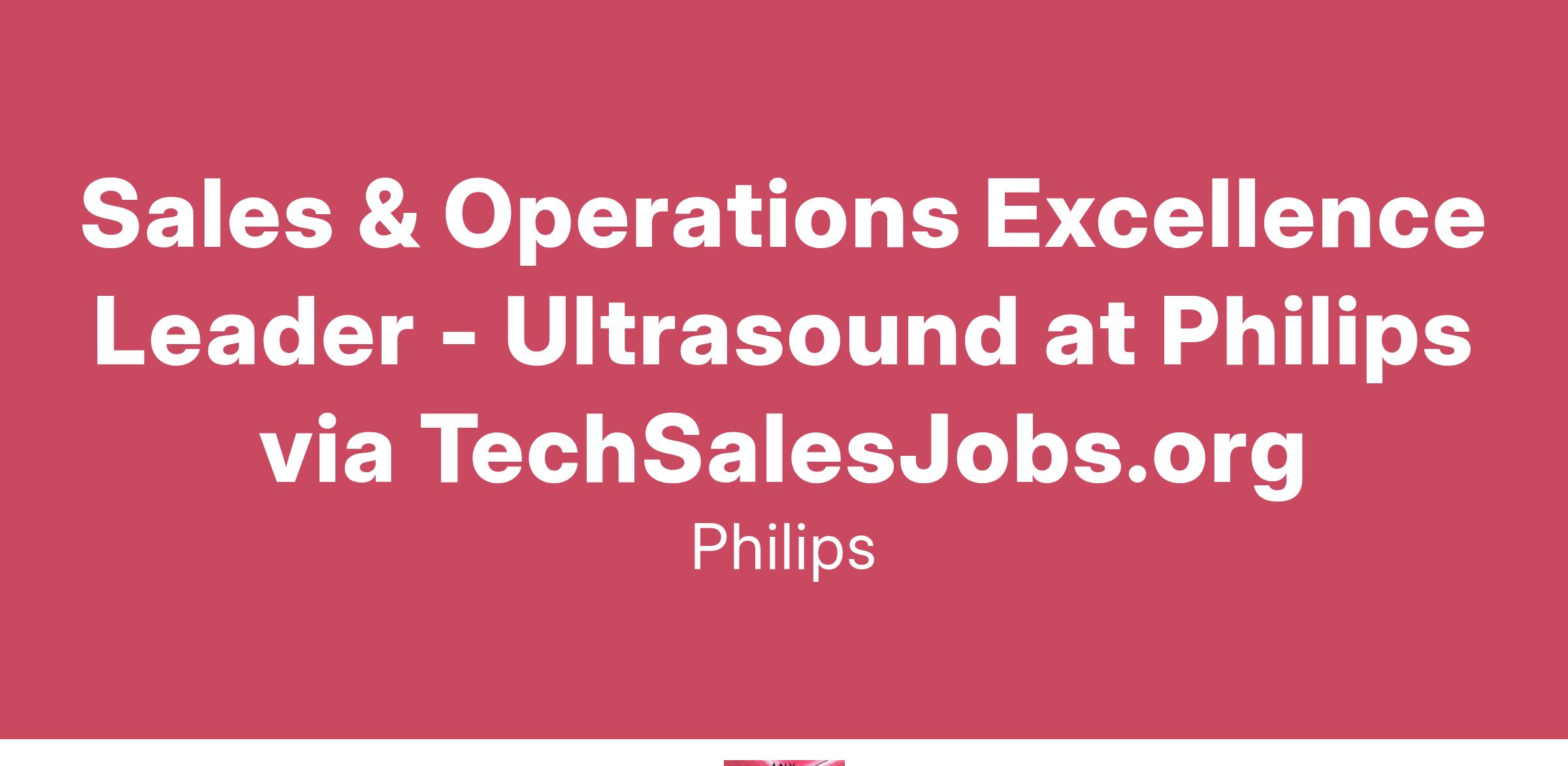 Sales & Operations Excellence Leader - Ultrasound will lead the improvement and execution of the S&OE process for a dedicated business unit in North America.