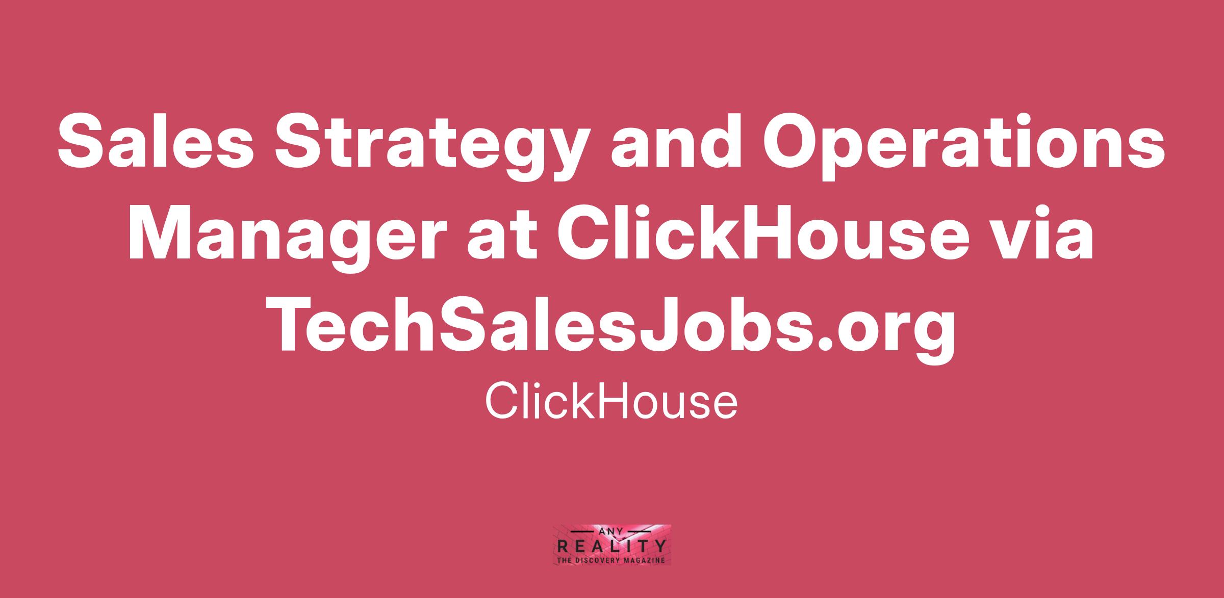 ClickHouse is looking for an experienced Sales Operations Manager to work closely with our sales team as a business partner to drive alignment and growth within the business through 1) analysis and reporting 2) execution of sales programs and tooling 3) driving efficient operations 4) sales strategy and planning. This role will be central in supporting our go-to-market strategy and will wear many hats within the operations team as the team scales with new initiatives. If this sounds like you, then we’d love to hear from you.