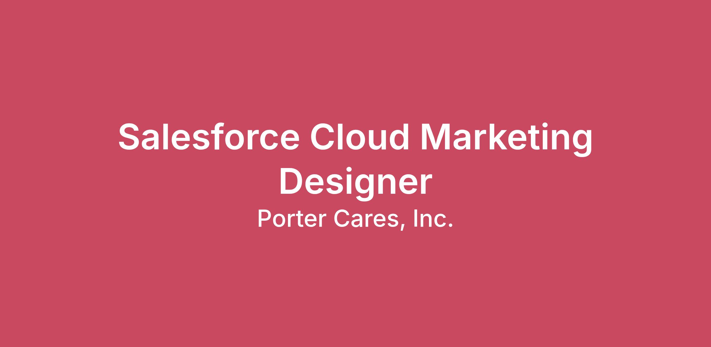 Porter is hiring for a Salesforce Cloud Marketing Designer We are seeking a talented and creative Salesforce Marketing Cloud Designer to join our team. The ideal candidate will be responsible for designing and implementing visually appealing and effective marketing campaigns using Salesforce Marketing Cloud. This role requires a strong understanding of digital marketing, email design, and marketing automation. Key Responsibilities: Design and develop email templates, landing pages, and other digital assets using Salesforce Marketing Cloud. Collaborate with marketing and sales teams to create and execute marketing campaigns that align with business goals. Utilize Salesforce Marketing Cloud tools such as Email Studio, Journey Builder, and Content Builder to create personalized customer journeys. Conduct A/B testing and analyze campaign performance to optimize future marketing efforts. Ensure all marketing materials adhere to brand guidelines and industry best practices. Stay up-to-date with the latest trends and advancements in digital marketing and Salesforce Marketing Cloud. Qualifications: Bachelor's degree in Marketing, Graphic Design, or a related field. Proven experience as a Salesforce Marketing Cloud Designer or similar role. Proficiency in Salesforce Marketing Cloud, including Email Studio, Journey Builder, and Content Builder. Strong understanding of HTML, CSS, and email design best practices. Excellent communication and collaboration skills. Ability to work in a fast-paced environment and manage multiple projects simultaneously. Preferred Skills Experience with marketing automation and CRM systems. Knowledge of data segmentation and personalization techniques. Familiarity with graphic design software such as Adobe Creative Suite. \n\n$80,000 - $90,000 a year\n Benefits of Working with Porter: · Remote work environment · Medical, dental and vision benefits within 30 days of hire · Paid Time Off · Paid Holidays · A fun team and special culture