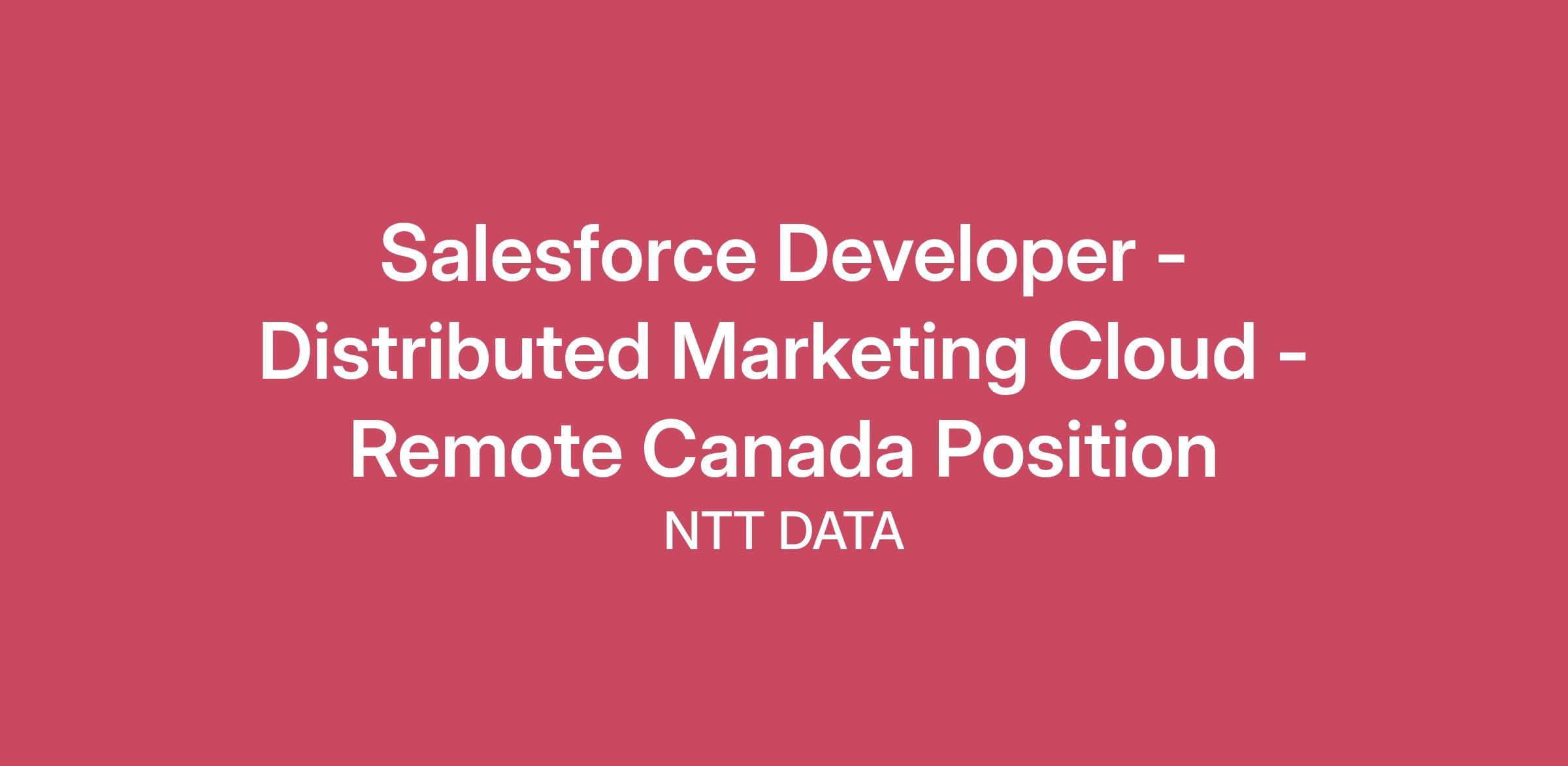 Salesforce Developer - Distributed Marketing Cloud - Remote Canada Position
