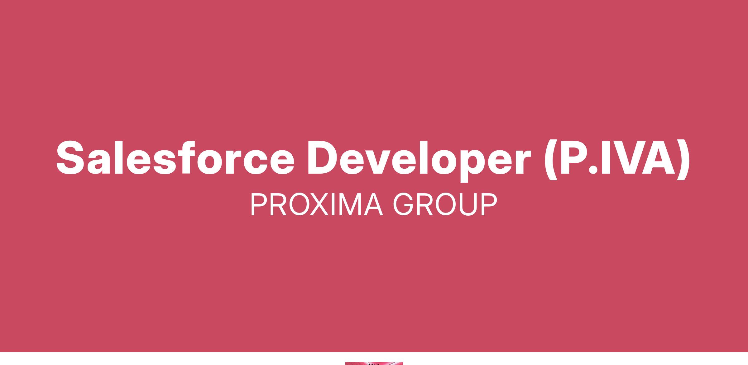 Proxima è un gruppo di aziende con skill funzionali e tecnologiche innovative, che mettono a fattor comune la propria esperienza in un’offerta congiunta di sviluppo di soluzioni all’interno della nostra Software Factory. Offriamo consulenza e servizi di Application Management e Quality Assurance. Chi cerchiamo? Salesforce Developer (P.IVA) Dove e come? Full Remote Di cosa ti occuperai? La risorsa verrà inserita su progetti in ambito Financial Services and Insurance, Energy&Utilities, presso un nostro importante cliente Hai queste competenze? Sviluppo su piattaforma Salesforce (classi Apex, trigger, lightning aura component, lightning web component, pagine Visualforce); Sviluppo integrazioni REST e SOAP su piattaforma Salesforce; Gestione dei rilasci tramite Salesforce CLI Tools, Change Set; Gestione del versioning del software utilizzando GitHub, Git o Bitbucket; Configurazione della piattaforma Salesforce. Sei il candidato ideale se… Hai capacità relazionale e predisposizione a lavorare in team. Hai attitudine al problem solving. Sei orientato/a al risultato. Cosa offriamo? Contratto a p.iva Buoni pasto (anche in modalità full remote). Assicurazione sanitaria con copertura integrativa. I nostri benefit Percorsi di carriera Abbiamo un articolato sistema di valutazione delle competenze e misurazione delle performance che consente al dipendente di crescere insieme a noi. Formazione professionalizzante Offriamo percorsi di formazione e di aggiornamento professionale con taglio tecnico/pratico su tematiche in ambito ICT. Sconti e promozioni riservate Abbiamo stabilito degli accordi con delle piattaforme per riservare ai nostri dipendenti scontistica e promozioni esclusive.