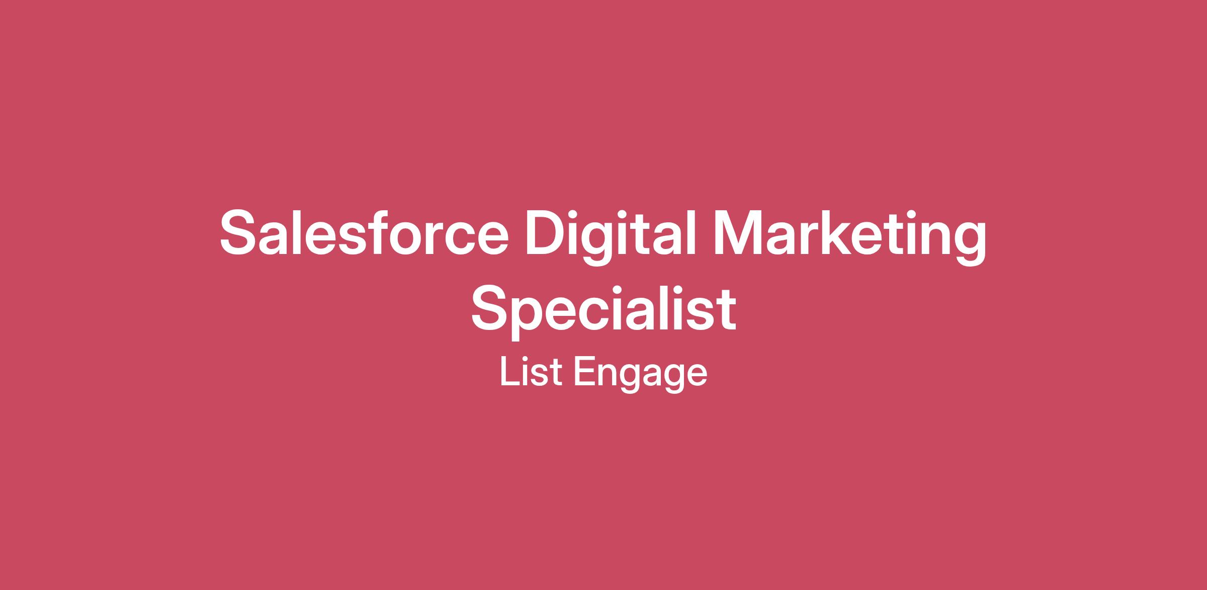 Salesforce Digital Marketing Specialist We’ve been forging digital transformation through the lens of Salesforce for 20+ years for 3,000+ customers across the globe. We are a Salesforce Ventures-backed, Summit status, Marketing Cloud Full Stack Partner. We are a cross-cloud shop with an emphasis on Agentforce, Data Cloud, Loyalty Cloud, Personalization, Intelligence, Marketing Cloud Engagement, Service Cloud, and Sales Cloud.We accomplish incredible digital transformation for our customers with incredible people. We’ve always held to the fact that talent trumps location, but culture trumps talent. We care about our people and we care about our customers. About the Role:We are looking for a brilliant marketing mind to join our team with a keen focus on content marketing, channel activation, and segmentation strategy. This role would involve collaborating with our larger team to create amazing campaigns. This person needs to understand the intersection of sales, marketing, and technology. This role sits on our internal marketing team, working to build the ListEngage brand. The role reports to our GTM Lead. Duties & Responsibilities: Creating content & distributing it across channelsOwning our instance of Account Engagement (FKA Pardot) for email campaigns, from the creative brief, creative review, HTML build, HTML QA, Scheduling, and beyond Diving into the weeds of segmentation and engagement Collaborating with the marketing lead to develop a variety of marketing materialsCreate content based on templates and maintain updates on prior production contentIntegrating our web, social, and email channels for better return on investment Education and Experience Requirements:Design skills for reviewing and providing feedback on designs High attention to detailKnowledge of computer operating systems, hardware, and softwareExcellent verbal communication skillsA drive to learn more, being growth-oriented You love Salesforce technology, marketing, and content A desire to own itBonus: You love finding a cross-channel campaign solution You’re obsessed with creating connected experiences across channels Trailblazer with any Salesforce certification Knowledge, Skills and Abilities: Increase email channel segmentation by 40% within the first year Building systems and programs to drive better personalization through greater segmentation and data utilization Increase email lead creation by 10% Increase cross-channel lead generation by 25% What We Offer:Competitive salary and performance-based incentivesComprehensive benefits package, including health, dental, and vision insuranceOpportunities for professional development and career growthA collaborative and inclusive work environmentWhy You Should Join Us:100% CEO approval on GlassdoorSmall but mighty team of ~150 Engagers Values that drive us: Be Great at What You Do, Be Growth Oriented, Be a Team Player, Own It100% remote work arrangements (minimal travel may be required per client need)If you’re interested, so are we! Send your resume our way, and we’ll contact you for a phone interview if you meet qualifications We are an equal opportunity employer and love diversity at our company. We do not discriminate on the basis of race, religion, color, national origin, gender, sexual orientation, age, marital status, or disability status.