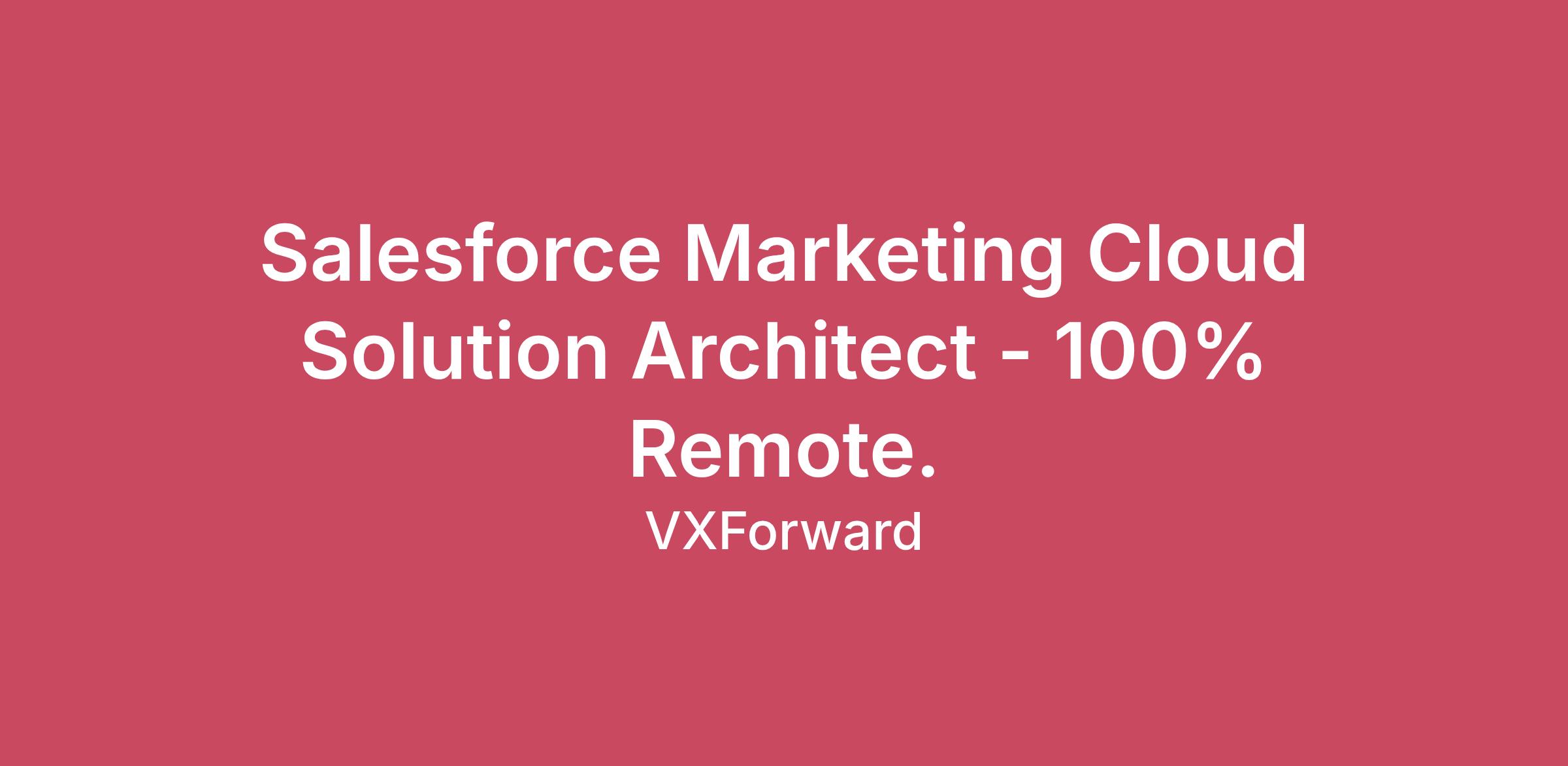 Salesforce Marketing Cloud Solution Architect - 100% Remote.