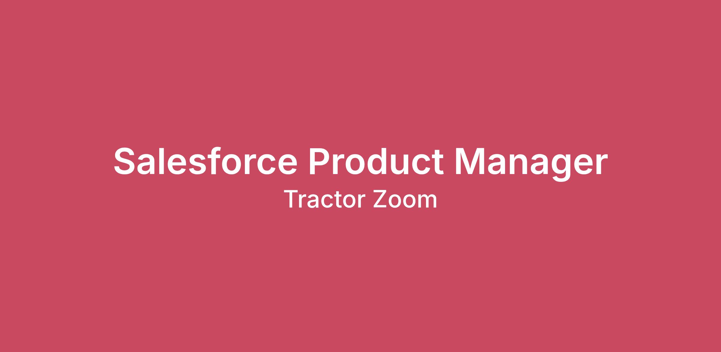 Salesforce Product Manager West Des Moines, IA - Hybrid or Remote | Full-Time Role Applicants must be authorized to work for any employer in the U.S. We are unable to sponsor or take over sponsorship of an employment Visa at this time. About Tractor Zoom At Tractor Zoom, we’re on a mission to transform how the ag industry buys, sells, and values equipment. We connect dealers, farmers, lenders, and auctioneers through one intelligent platform that delivers real-time data, powerful insights, and faster paths to action. Whether you're in the field, on the lot, or behind the desk—we help you price smarter, move faster, and sell more. With data from over 65% of U.S. used equipment listings, Tractor Zoom is the #1 Sales Tech in agriculture, providing unmatched visibility into the market. From streamlining valuations to automating workflows, our solutions are designed to fuel smarter decisions and unlock growth for every player in the equipment lifecycle. We’re Looking for an ‘A’ Player We are seeking a tactical, purpose-driven Salesforce Product Manager with deep Salesforce expertise. Your sole mission and core focus is to use our proprietary data to build software that will drive ROI and engagement for dealers. This role will be required to work directly with dealers to develop software strategies that help dealers make data driven equipment decisions. To succeed in this role, you should be a perceptive and creative leader and reliable problem-solver. As an employee at our early-stage technology company, you will have a deep impact in the success and growth of the company. Your Responsibilities: Develop and evolve a product roadmap that translates high-level strategy into actionable milestones; proactively communicate progress and changes to leadership and stakeholders. Able to make data-driven decisions regarding product specifications while acknowledging technical trade-offs. This includes when to leverage standard Salesforce features versus when to build with custom Apex or Lightning Web Components (LWC). Implement automated Salesforce workflows and technologies to enhance product scalability and internal operational efficiency. Define success criteria for all new features and products; analyze and report on post-launch performance against success criteria to drive continuous improvement. Identify market opportunities through data analysis and research to ensure the product remains competitive. Lead customer discovery through frequent interviews and on-site visits to uncover needs and pain points, acting as the "voice of the customer" within the product team. Collaborate with Engineering and UX/Design to execute on the roadmap, ensuring high-quality releases that meet user expectations. Own the product-side execution of go-to-market plans, ensuring all internal teams are aligned on the value proposition and launch objectives. Balance business goals with technical feasibility, ensuring that product decisions drive value and solve genuine user problems. Other duties as assigned. Position Requirements: 5+ years in product management or related fields. Strong experience managing products within or integrated with Salesforce. Experience in conducting, compiling and presenting customer research. Able to think critically and make data-driven decisions based on product specifications, while acknowledging trade-offs. Passion for data driven innovation and solutions for dealers. Outstanding project and time management skills. Excellent communication skills. Salesforce certifications preferred. Previous startup experience desired. Benefits: 80% Health, Vision and Dental Insurance Covered 401k Program 11+ Paid Holidays Unlimited PTO Competitive Salary Company Stock Performance Based Culture Dog-friendly office Hybrid - 4 days in office and 1 day remote Tractor Zoom Culture We are a small but mighty team of driven, out-of-the-box thinkers that are hungry for information. We are not only passionate about identifying customer pain points but inspired to solve them. Our values unite us and help us work together toward our common goals. We’re a customer first organization knowing they are ultimately the end users of our products and technology. If you’re interested in making a difference and seeing your efforts directly impactthe trajectory of a company. Come join us!