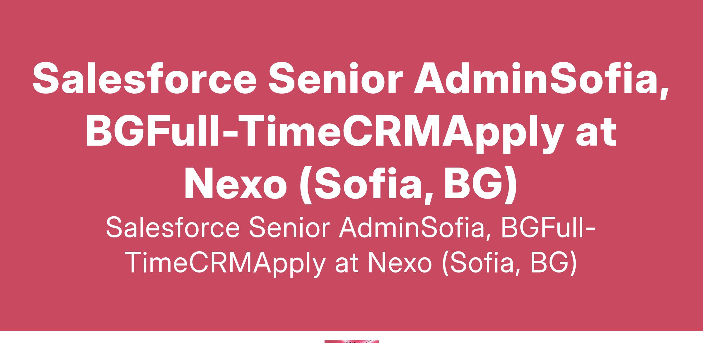 Salesforce Senior AdminSofia, BGFull-TimeCRMApply at Nexo (Sofia, BG)