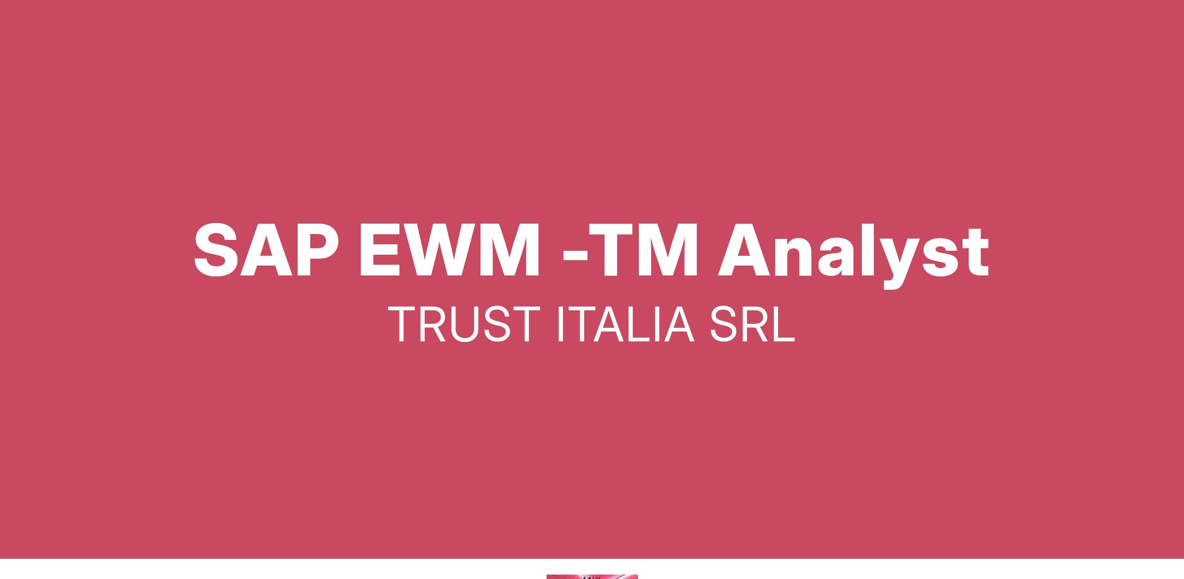 Trust Italia Srl è una società di consulenza informatica nata da professionisti del settore di decennale esperienza offre soluzioni globali per l’informatica negli ambienti web e non solo. Soluzioni che sono il punto d’incontro tra un ampio bagaglio di competenze progettuali e le più avanzate metodologie di sviluppo. Genera valore nelle aziende fornendo soluzioni in grado di far funzionare il loro business. Trust Italia ha un forte Know How in ambito bancario / Assicurativo nonché è fortemente legata allo sviluppo di applicativi custom per tutti gli altri settori tra cui : Servizi, Oil&gas, Sanità. Attualmente stiamo cercando: 1 SAP EWM TM Analyst Disponibilità immediata e/o a breve.