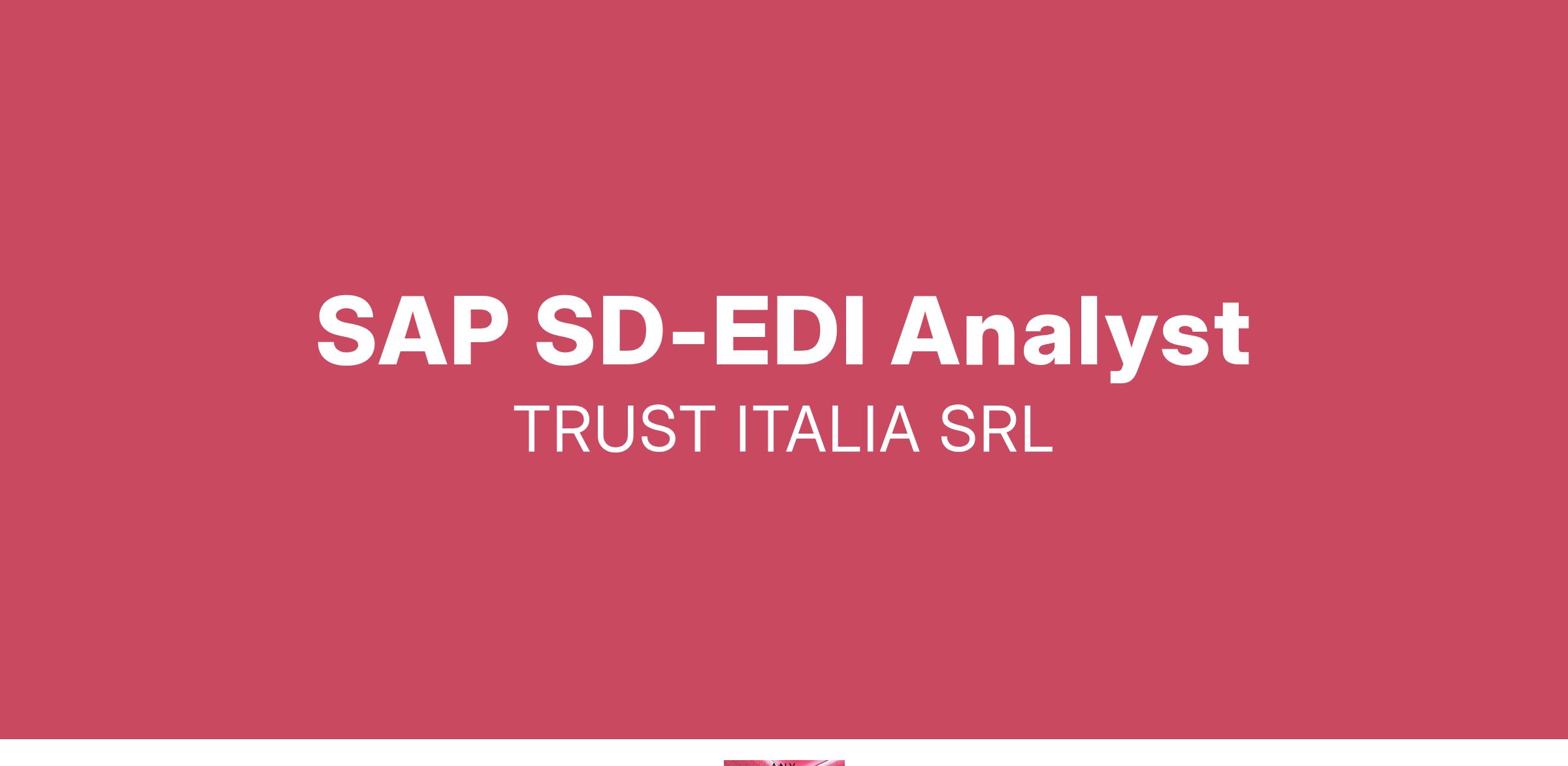 Trust Italia Srl è una società di consulenza informatica nata da professionisti del settore di decennale esperienza offre soluzioni globali per l’informatica negli ambienti web e non solo. Soluzioni che sono il punto d’incontro tra un ampio bagaglio di competenze progettuali e le più avanzate metodologie di sviluppo. Genera valore nelle aziende fornendo soluzioni in grado di far funzionare il loro business. Trust Italia ha un forte Know How in ambito bancario / Assicurativo nonché è fortemente legata allo sviluppo di applicativi custom per tutti gli altri settori tra cui : Servizi, Oil&gas, Sanità. Attualmente stiamo cercando: 1 SAP SD-EDI Analyst Disponibilità immediata e/o a breve.