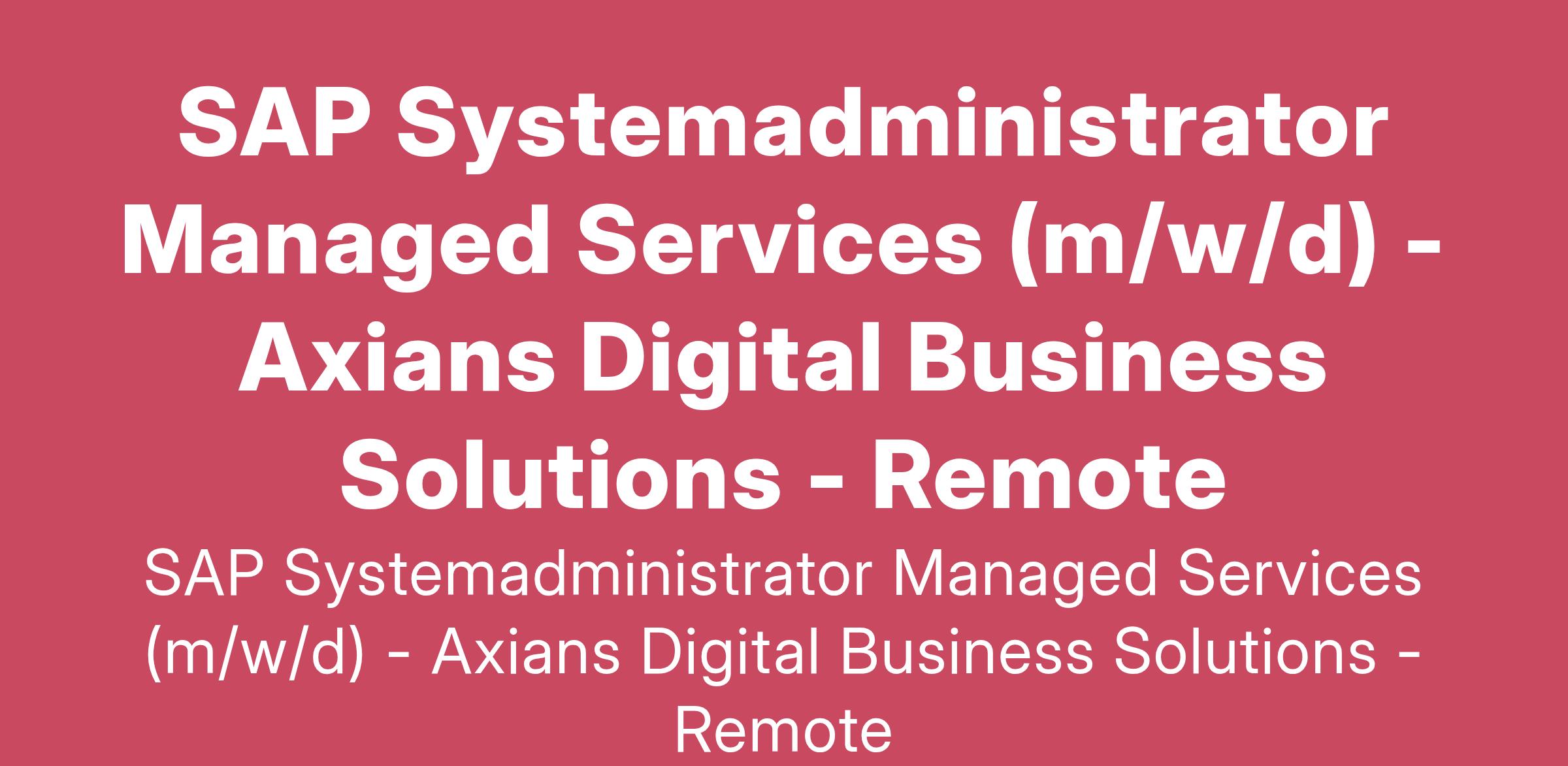 SAP ist dein Steckenpferd und du willst deine Karriere auf die nächste Stufe bringen? Als SAP-Systemadministrator (m/w/d) hast Du die Chance, Dein Know-how und Deine Ideen in die SAP-Landschaft unserer Kunden einfließen zu lassen. Bring’ Dich ein und genieße die vielen Vorteile bei uns. #TeamAxians