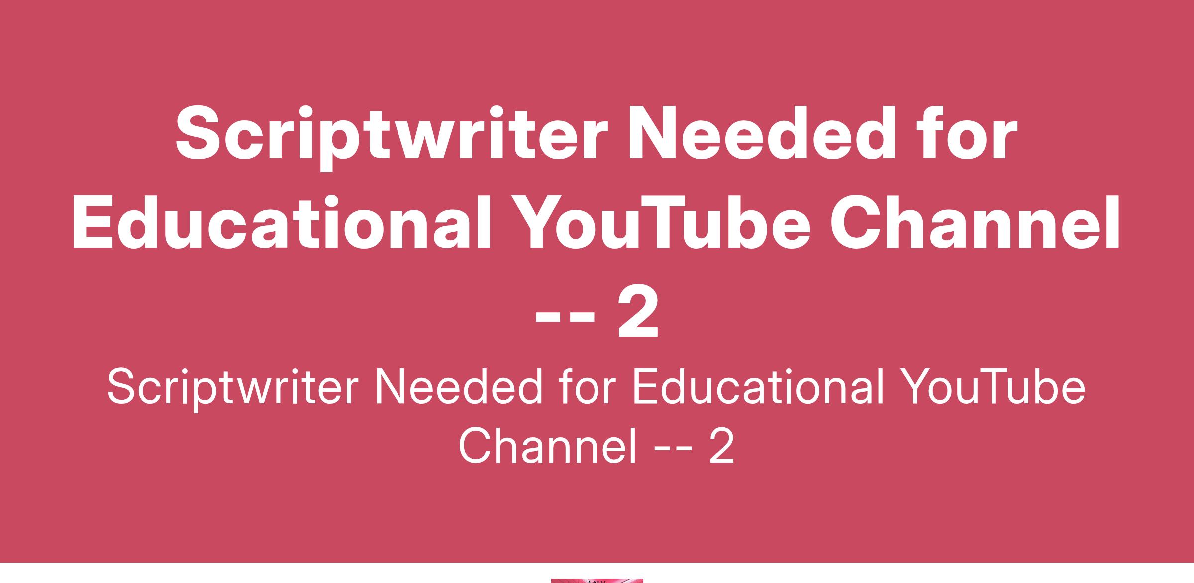I'm seeking a skilled scriptwriter to help transform my research data into engaging narratives for my general knowledge YouTube channel aimed at adults. Key Responsibilities: - Craft scripts in a formal... (Budget: ₹400 - ₹750 INR, Jobs: Article Rewriting, Report Writing, Research Writing, Script Writing)