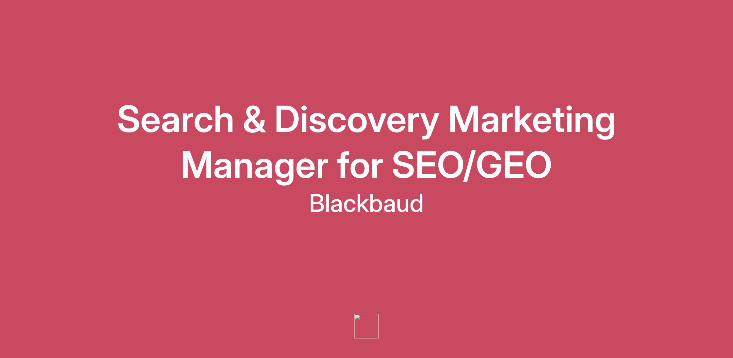 At Blackbaud, we’re evolving how people find, trust, and engage with our brand in the age of AI. As search transforms from traditional queries to AI-generated answers, we’re seeking an innovative Search & Discovery Manager to lead the charge. This role is for a forward-thinking search leader who thrives at the intersection of organic visibility, structured data, and artificial intelligence.  You’ll shape a strategy that goes beyond traditional search—driving visibility across AI-powered engines like ChatGPT, Perplexity, and Gemini, while also activating brand presence in the places where LLMs learn: Reddit, Quora, YouTube, and other trusted open platforms. This is more than SEO. It’s reimagining how people discover truth in a world shaped by AI.  What you'll do: Lead and evolve Blackbaud’s search & discovery strategy across web content, blogs, product pages, and knowledge hubs—with a focus on AI-powered discovery.Extend organic visibility strategy to platforms that influence LLM training and responses, including Reddit, Quora, YouTube, LinkedIn and other public forums.Use generative AI tools and SEO platforms for keyword discovery, content optimization, and performance analysis.Optimize content for SERP visibility, featured snippets, and emerging answer engine platforms (e.g., ChatGPT, Perplexity, Gemini).Develop frameworks for schema markup, structured data, and content alignment with AI model preferences.Collaborate with content, product marketing, brand and web teams to create strategic SEO/GEO roadmaps and content action plans for prioritized terms and prompts to scale search visibility and improve traffic quality. Stay ahead of evolving trends in AI search and apply insights to strategy and execution.Build performance dashboards and connect SEO/AEO efforts to measurable business outcomes, including pipeline and revenue impact.  What you'll bring: 5+ years of experience leading SEO in a B2B SaaS environment.Deep understanding of on-page SEO, technical SEO, and content optimization strategies.Familiarity with AEO (Answer Engine Optimization) principles and structured data best practices.Experience managing or contributing to content visibility on platforms like Reddit, Quora, YouTube, and other LLM-relevant ecosystems.Proficient with tools like Semrush, Ahrefs, Clearscope, Screaming Frog, and generative AI platforms (ChatGPT, Claude, Gemini, Perplexity).Demonstrated ability to grow organic traffic and improve search rankings at scale.Strong analytical and experimentation mindset with a focus on ROI and business alignment.Exceptional collaboration and communication skills across cross-functional marketing and product teams.Enthusiasm for learning, adapting, and leading in an evolving AI-driven search ecosystem. #LI-REMOTEStay up to date on everything Blackbaud, follow us on Linkedin, Twitter, Instagram, Facebook and YouTube ​Blackbaud is a remote-first company which embraces a flexible remote work culture.  Blackbaud supports hiring and career development for all roles from the location you are in today!Blackbaud is proud to be an equal opportunity employer and is committed to maintaining a diverse and inclusive work environment. All qualified applicants will receive consideration for employment without regard to race, color, religion, gender, gender identity or expression, sexual orientation, national origin, physical or mental disability, age, or veteran status or any other basis protected by federal, state, or local law.To all recruitment agencies: We do not accept unsolicited agency resumes and are not responsible for any fees related to unsolicited resumes.A notice to candidates: Recruitment Fraudulent Alert: Your personal information and online safety as a candidate mean a lot to us! At Blackbaud and our portfolio of companies, recruiters only direct candidates to apply through our official careers page at https://careers.blackbaud.com/us/en or our official LinkedIn page. Recruiters will never request payments, ask for financial account information or sensitive information like social security numbers, or conduct interviews via Skype.  Anyone suggesting otherwise is not a representative of Blackbaud. If you are unsure if a message is from Blackbaud, please email blackbaudrecruiting@blackbaud.com. The starting base pay is $77,700.00 to $104,500.00. Blackbaud may pay more or less based on employee qualifications, market value, Company finances, and other operational considerations.Benefits Include:Medical, dental, and vision insuranceRemote-first workforce401(k) program with employer matchFlexible paid time offGenerous Parental LeaveVolunteer for vacationOpportunities to connect to build community and belongingPet insurance, legal and identity protectionTuition reimbursement program