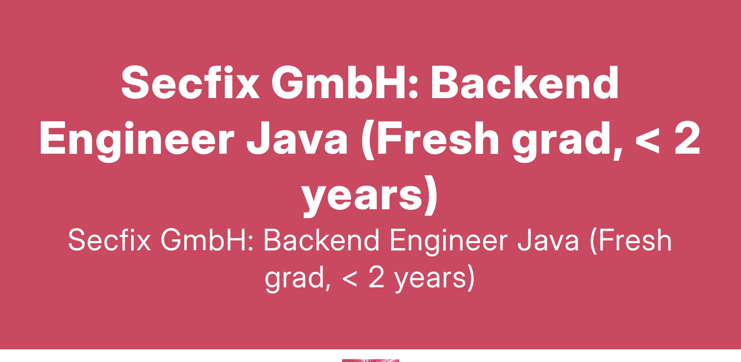 To apply: https://weworkremotely.com/remote-jobs/secfix-gmbh-backend-engineer-java-fresh-grad-2-years