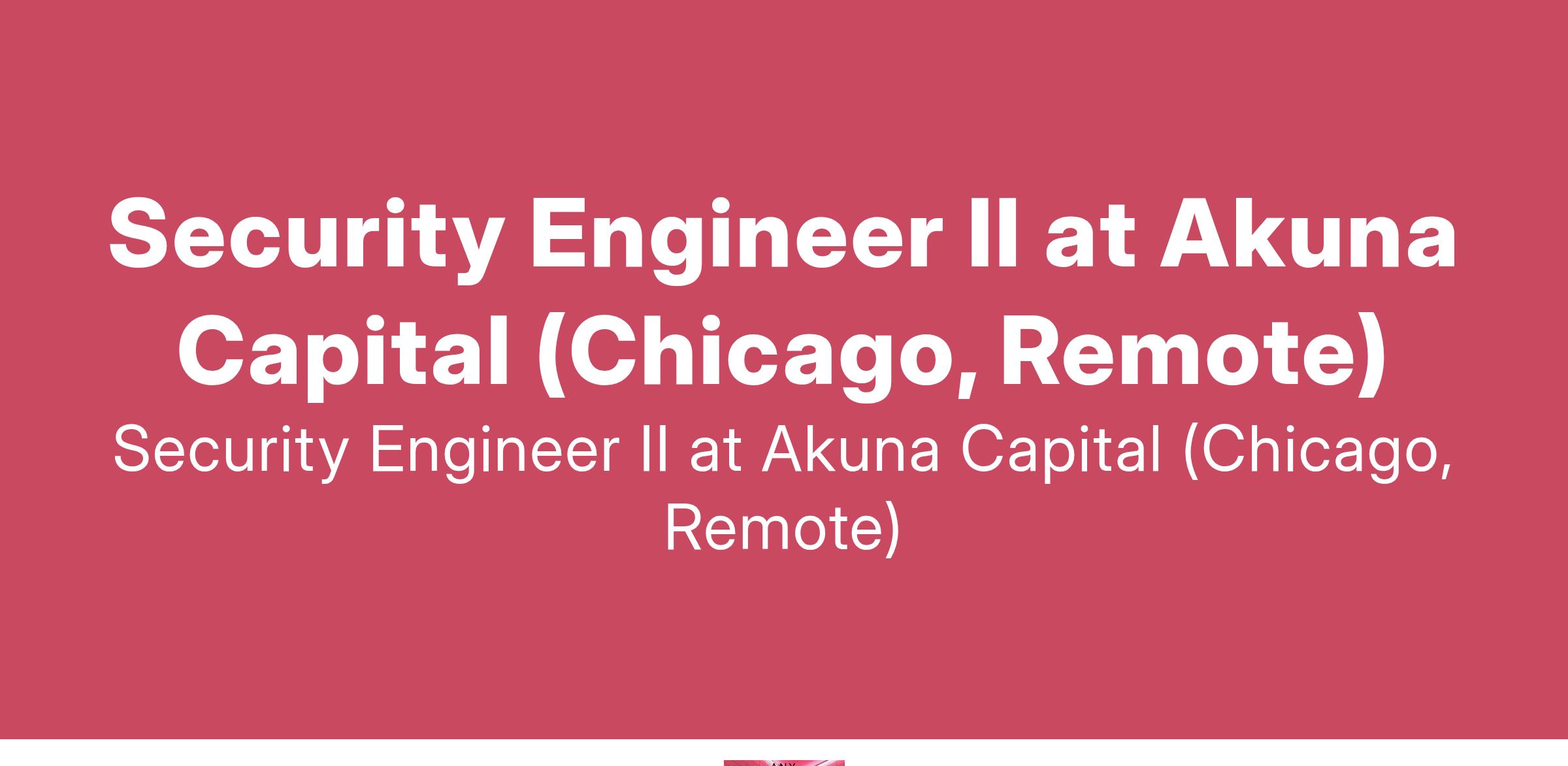 Security Engineer II at Akuna Capital (Chicago, Remote)