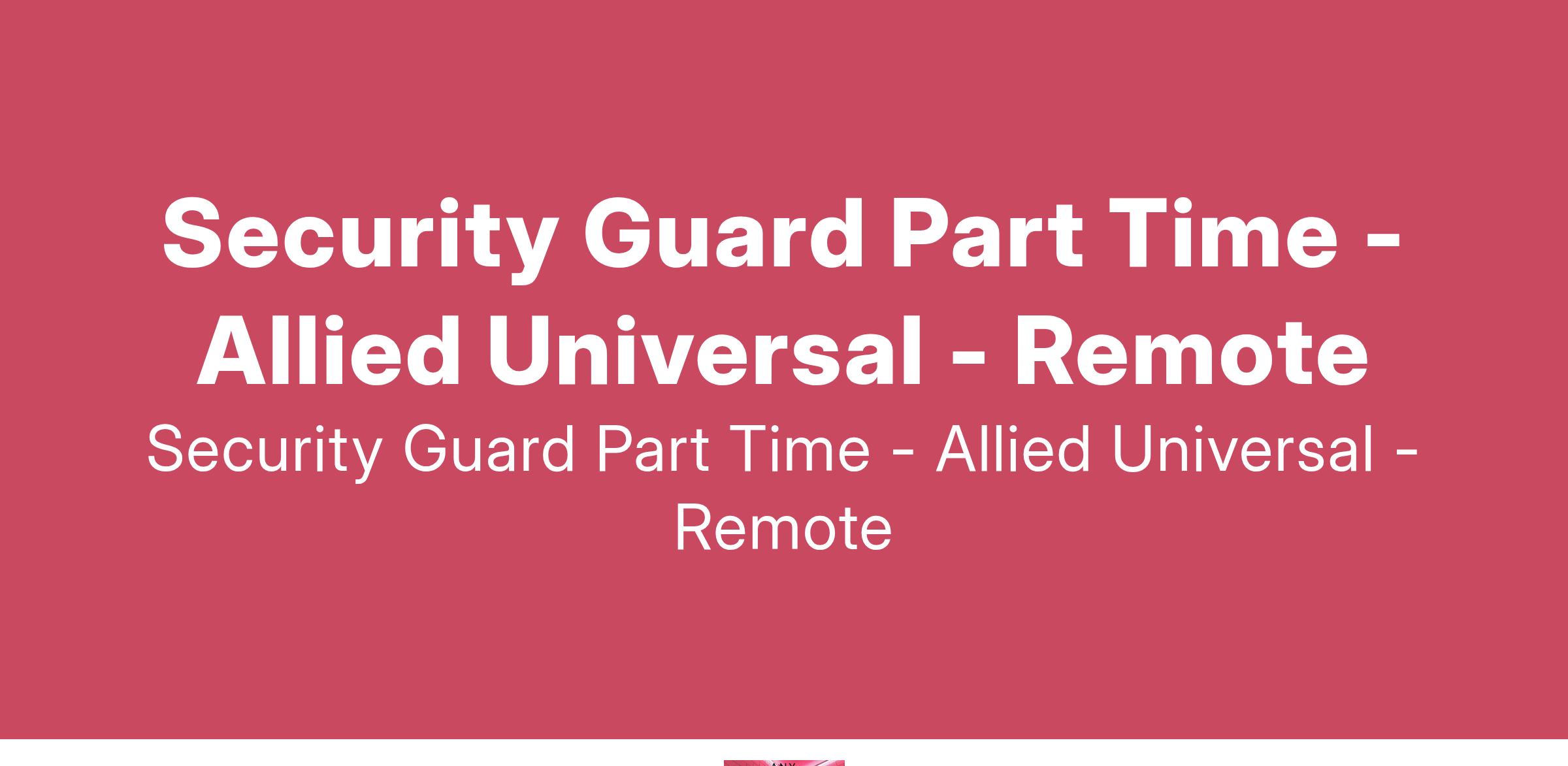 Allied Universal is seeking part time security officers to oversee a Manufacturing Site in Springfield, MA