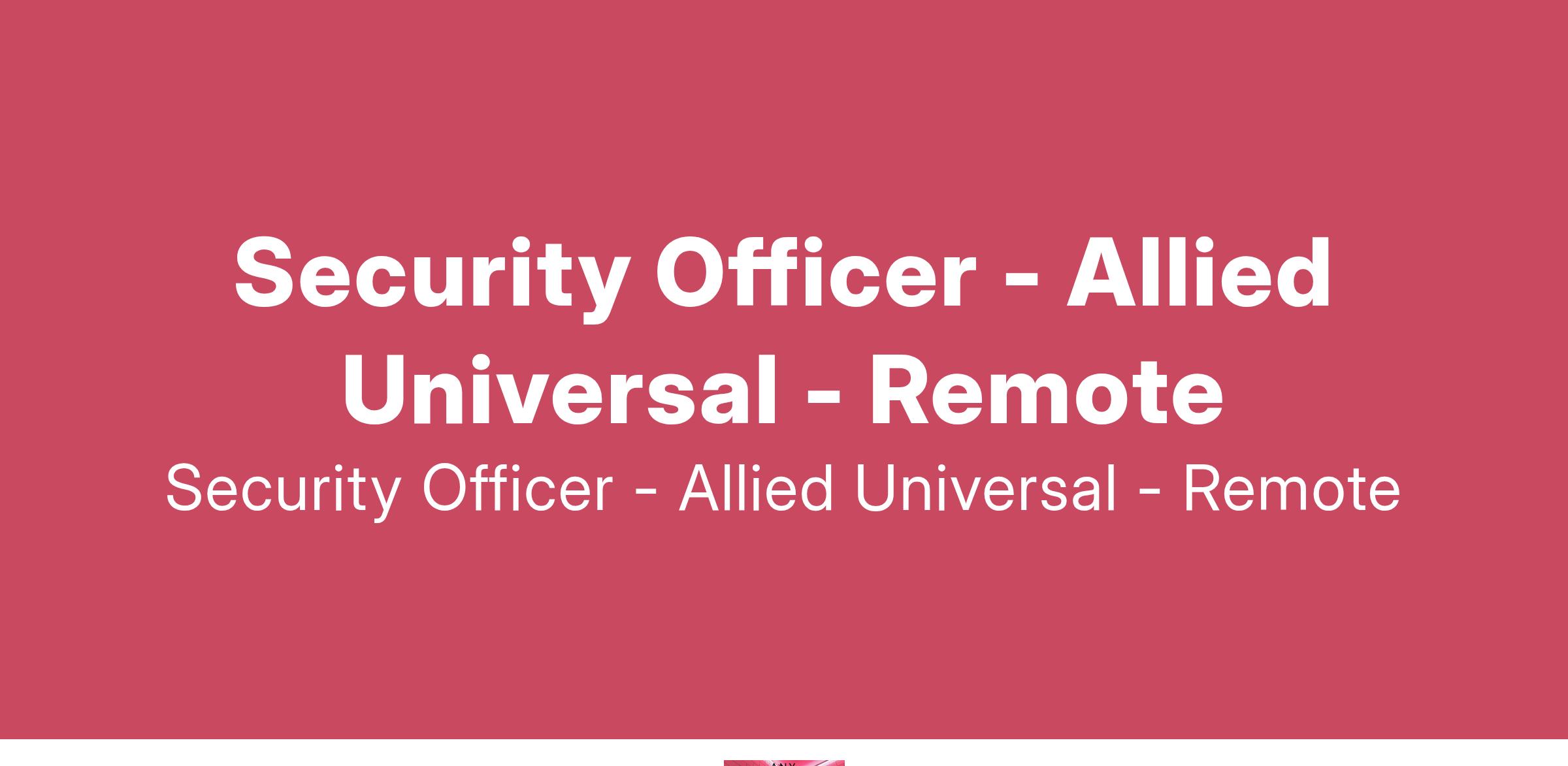 Allied Universal®, North America’s leading security and facility services company, provides rewarding careers that give you a sense of purpose. While working in a dynamic, diverse and inclusive workplace, you will be part of a team that fuels a culture that will reflect in our communities and customers we serve. We offer medical, dental and vision coverage, life insurance, retirement plan, employee assistance programs, company discounts, perks and more for most full-time positions!
