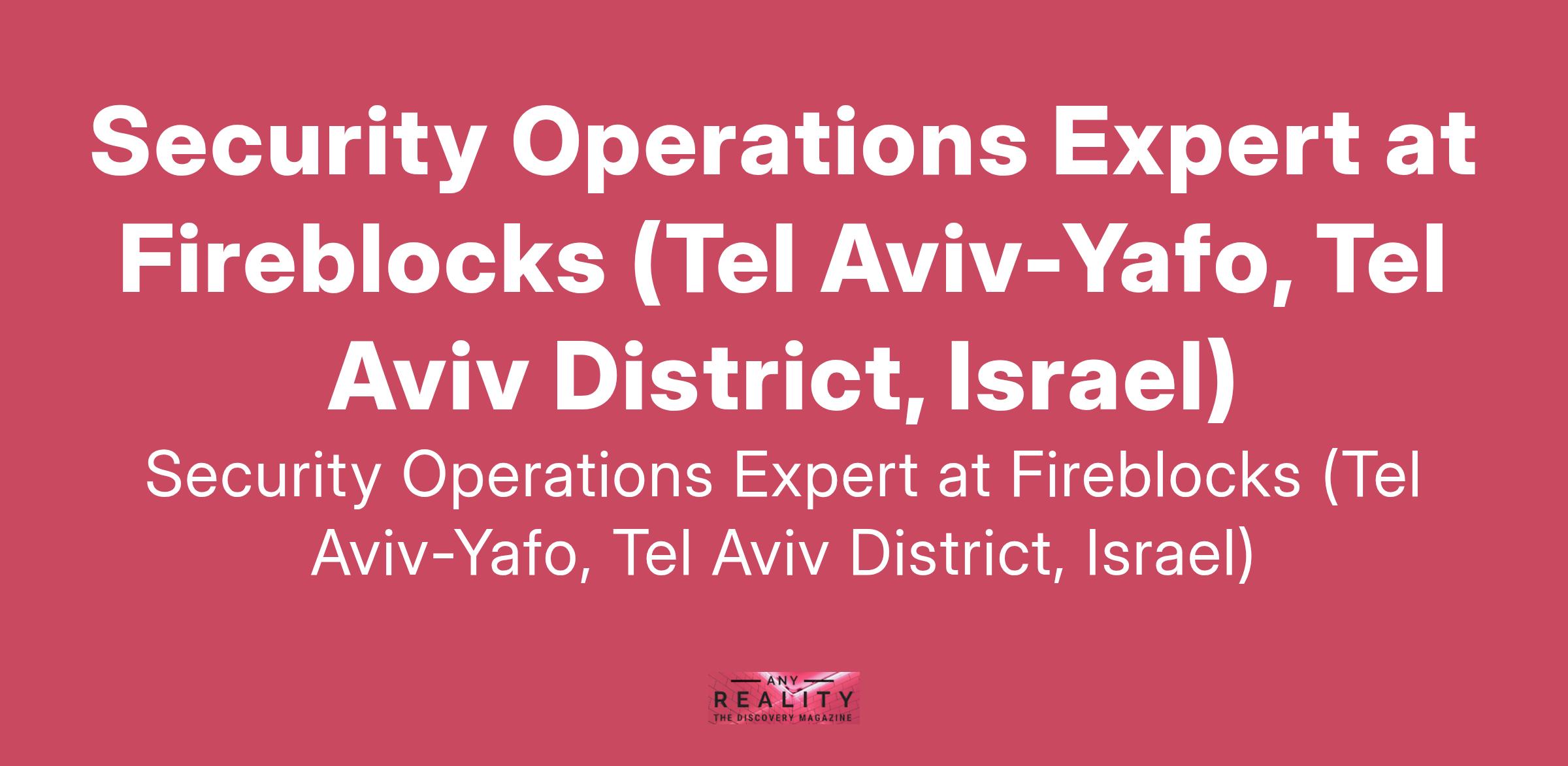 Security Operations Expert at Fireblocks (Tel Aviv-Yafo, Tel Aviv District, Israel)