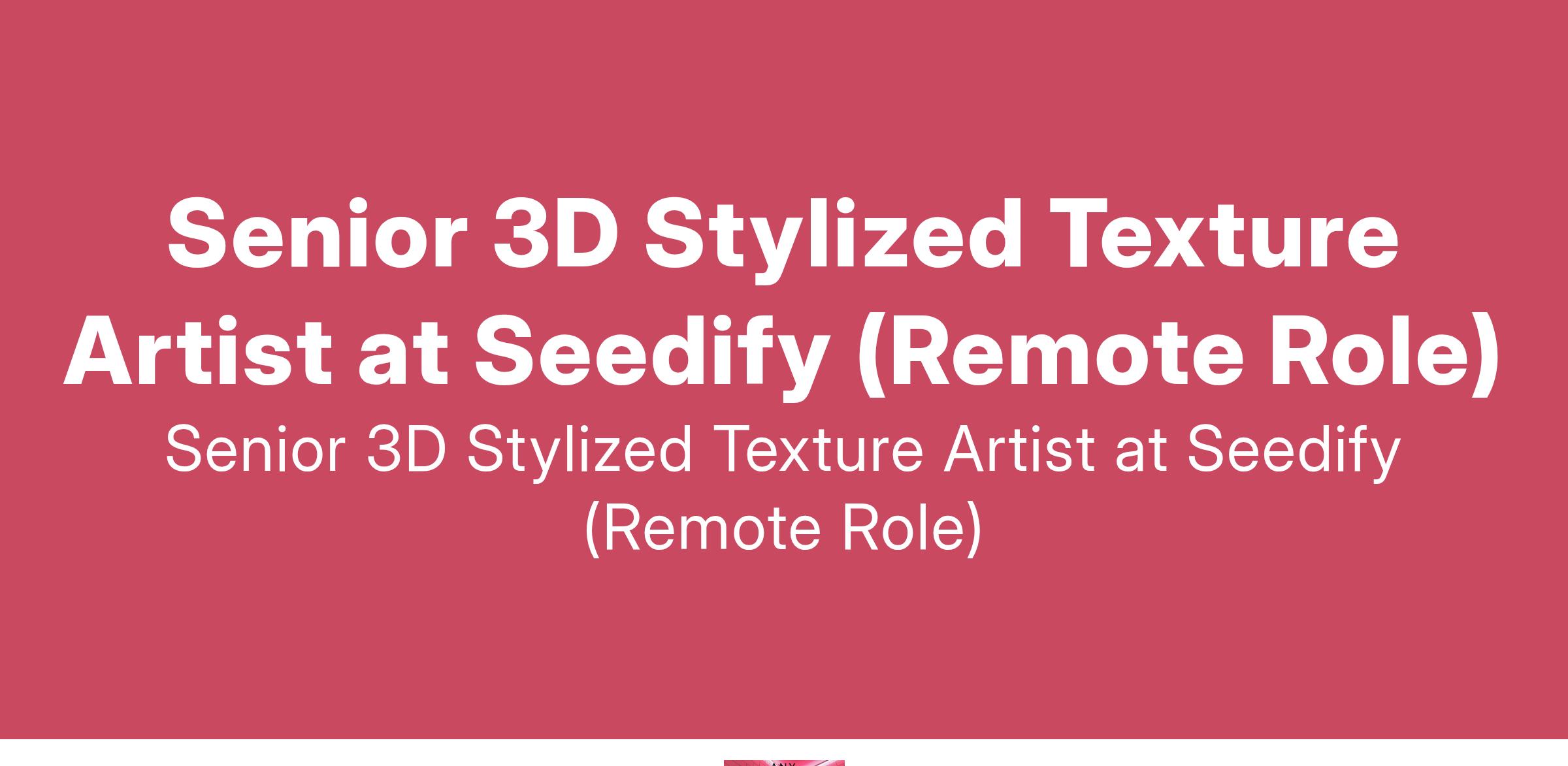 Senior 3D Stylized Texture Artist at Seedify (Remote Role)