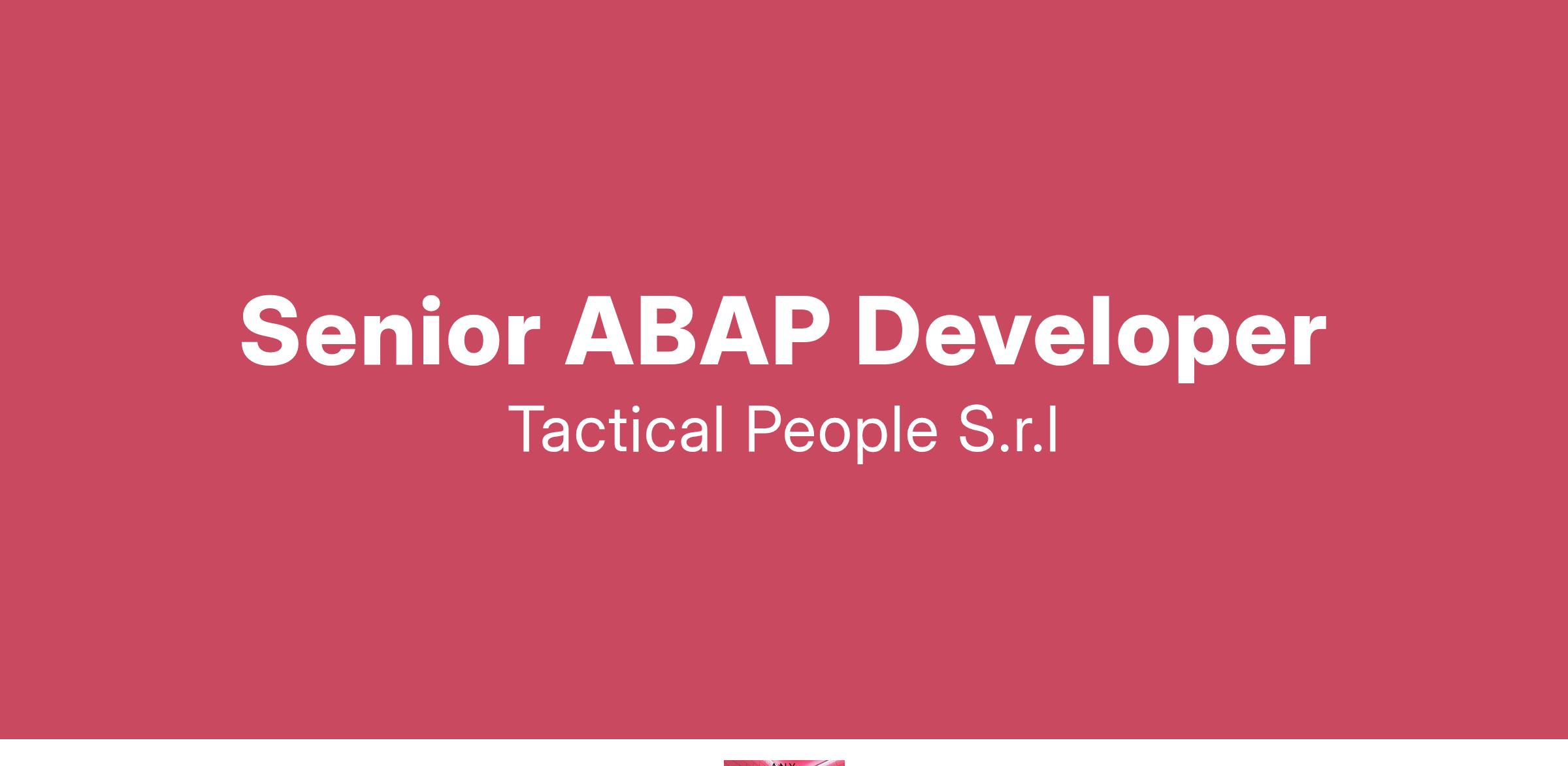 Unisciti a TACTICAL PEOPLE: Innovazione, Persone e Crescita nel Cuore della Digital Transformation Da oltre 20 anni, TACTICAL PEOPLE si posiziona come leader nel mercato ICT, guidando con passione e competenza i nostri clienti di medie e grandi dimensioni attraverso il dinamico percorso della digital transformation. La nostra mission è chiara: non solo abbracciare il cambiamento tecnologico, ma guidarlo, creando soluzioni all'avanguardia che plasmino il futuro digitale. In TACTICAL PEOPLE, crediamo fortemente nel mettere le persone al centro di ogni nostra iniziativa. Le persone sono il cuore pulsante della nostra azienda; il loro benessere, la loro crescita e il loro sviluppo sono la nostra priorità. Ci impegniamo a condividere le strategie aziendali con trasparenza e a fornire formazione e supporto a ogni livello, garantendo che ogni membro del team sia equipaggiato per eccellere e innovare. Stiamo cercando individui che condividano la nostra visione, che siano guidati dalla passione per la tecnologia e che desiderino essere protagonisti nella costruzione di un futuro digitale più luminoso. Se sei pronto a far parte di una squadra che valorizza il talento, incoraggia la crescita personale e professionale e lavora in prima linea nel settore della digital transformation, TACTICAL PEOPLE è il posto giusto per te. Posizione Aperta: Senior ABAP Developer Sede: Remoto Descrizione del ruolo: il candidato ideale minimo 5 anni di esperienza lavorativa come sviluppatore SAP ABAP . Cosa offriamo: Inserimento immediato in una Tech Community giovane e dinamica. TACTICAL LEARNING HUB, con corsi di aggiornamento e formazione. Il presente annuncio è rivolto ad entrambi i sessi, ai sensi delle leggi 903/77 e 125/91, e a persone di tutte le età e tutte le nazionalità, ai sensi dei decreti legislativi 215/03 e 216/03. I curricula dovranno pervenire completi di dicitura che autorizza il trattamento dei propri dati: “Si autorizza al trattamento dei dati personali ai sensi del D. Lgs. 196/2003.