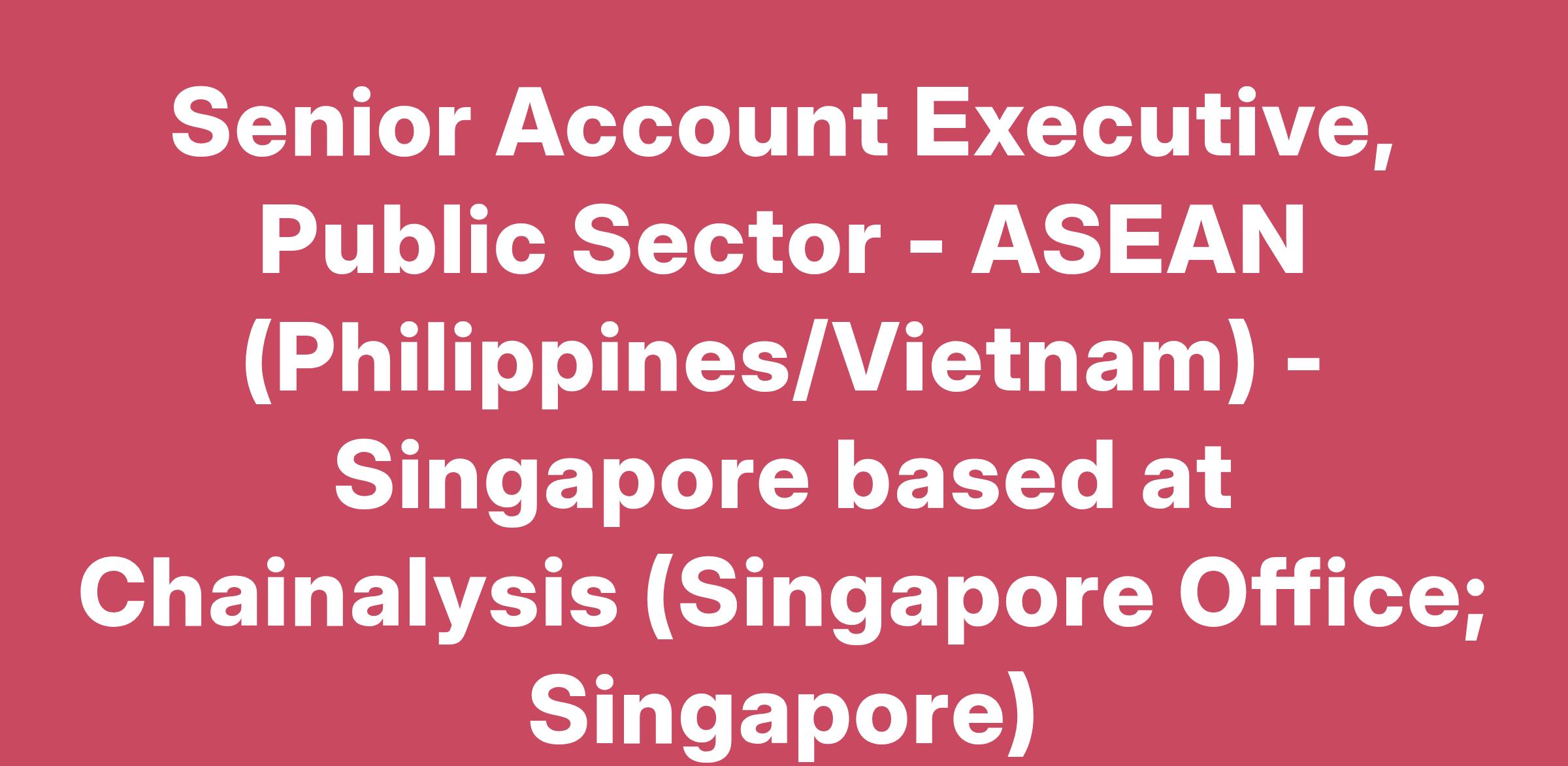 Senior Account Executive, Public Sector - ASEAN (Philippines/Vietnam) - Singapore based at Chainalysis (Singapore Office; Singapore)