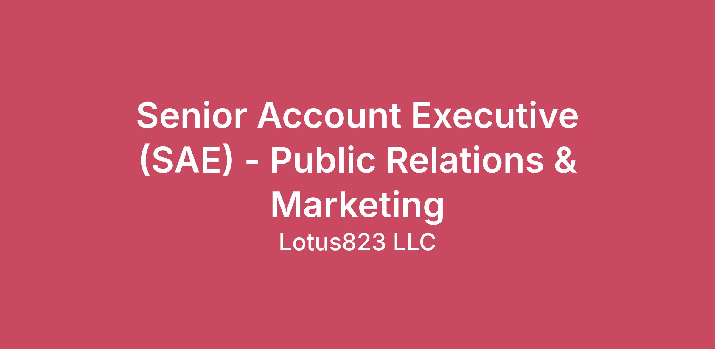 Senior Account Executive Public Relations and Integrated MarketingSummary:lotus823 is seeking a strategic, motivated, and experienced Senior Account Executive (SAE) to lead client campaigns across public relations, social media, influencer marketing, digital marketing, and content development. The SAE will play a critical role in managing day-to-day client relationships, leading campaign execution, and mentoring junior team members while collaborating with cross-functional teams.This role requires experience with strong communication, organization, and leadership skills, along with the ability to develop and execute strategic PR campaigns that drive measurable results, with an established network of media contacts and media relations in consumer goods. Experience with social media ads, influencer marketing, and digital marketing are a plus. The position is primarily remote, with occasional in-office work in Red Bank, NJ and travel as needed.Key Responsibilities:Client & Account ManagementServe as a primary day-to-day contact for assigned client accounts and lead account activitiesManage the development and execution of integrated campaigns across PR, digital, influencer, and social channelsOversee project timelines, deliverables, and reporting to ensure campaigns stay on track and achieve client goalsLead internal and client meetings including agendas, recaps, and activity reportingIdentify opportunities for expanding client partnerships and improving campaign performancePR & Media RelationsDevelop and execute strategic media outreach campaigns to secure meaningful coverage for clientsLeverage and maintain a strong network of media contacts across the technology, consumer tech, and home/housewares media landscapeIdentify and secure product placement opportunities, reviews, and editorial features across relevant media outlets.Build and manage media lists and proactively identify new media opportunitiesDraft and edit press releases, media pitches, thought leadership articles, and other PR contentMonitor media coverage and analyze results to inform future strategiesSocial Media, Influencer & Content Lead the development and execution of social media and influencer marketing campaigns aligned with client strategyDevelop campaign messaging and content plans across social, influencer, and owned channelsManage influencer identification, outreach, partnerships, and campaign performance trackingOversee the creation of content including blogs, social posts, campaign messaging, and case studiesProvide strategic recommendations to clients on social media trends, content opportunities, and audience engagement strategiesDigital Marketing & Campaign Execution (Preferred, not required)Lead integrated marketing initiatives across paid, owned, and earned channels while collaborating with internal teams to ensure campaigns are executed effectivelyDevelop campaign strategies that align PR, digital marketing, and social media efforts to maximize resultsMonitor campaign performance and analyze metrics to optimize campaign effectiveness and client reportingEnsure all campaign elements are aligned with overall client strategy, timelines, and deliverablesResearch & Strategic SupportMonitor industry trends, emerging platforms, and marketing opportunities relevant to client industriesConduct research to identify new media opportunities, campaign ideas, and partnership opportunitiesContribute to strategy development and campaign planningTeam Leadership & MentorshipMentor and support junior team members including Account Executives, Assistant Account Executives, and Account CoordinatorsDelegate work appropriately and help guide team members in executing client deliverablesParticipate in brainstorming sessions and contribute strategic ideas to strengthen client campaigns Qualifications:5+years of public relations, communications, marketing or related experience (agency required)BA or BS in communications, journalism, public relations, marketing, or related fieldDemonstrated experience managing client relationships and leading integrated marketing campaignsEstablished network of media contacts and strong media relations experience within the technology, consumer tech, and home/housewares industriesExcellent writing and editing skills across multiple content formatsStrong organizational and project management skillsAbility to manage multiple client accounts and deadlines simultaneouslyExperience mentoring or managing junior team members preferredAbility to adapt to a changing work environmentWorking at lotus823:lotus823 is a growing public relations and digital marketing agency working with clients across several industries including technology, housewares, pet, and health/beauty.This opportunity is for a full-time, remote position. Benefits include:Remote position - may be required to work in the Red Bank, NJ office from time to time for certain trainings and meetingsFlexible working scheduleUnlimited PTOHealth, dental, and vision insurance401k retirement savingsVacation stipendFitness allowanceIncentive bonus programSummer FridaysContinued training and professional developmentFlexible Maternity/Paternity work schedulesVirtual team eventsOccasional travel to office, tradeshows, media events and customer meetings requiredClient meetings may occasionally be outside of normal business hoursEssential job functions:Ability to work from home with a distraction-free environmentContinually operates a computer and other office productivity machinery Must be able to observe multiple computer screens throughout working hours Must be able to express oneself clearly and conciselylotus823 is proud to be an equal opportunity workplace. We are committed to equal employment opportunity regardless of race, color, ancestry, religion, sex, national origin, sexual orientation, age, citizenship, marital status, disability, gender identity or Veteran status.