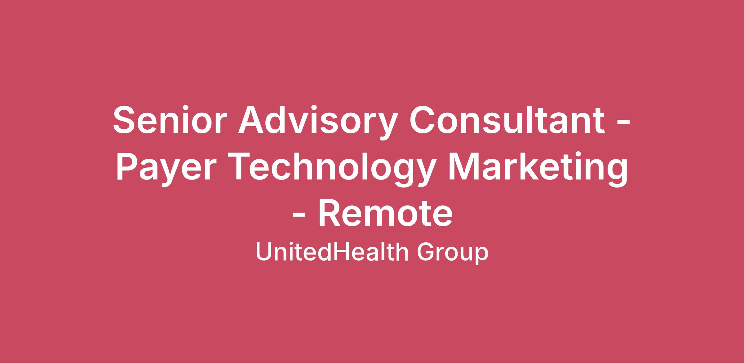 Optum Insight is improving the flow of health data and information to create a more connected system. We remove friction and drive alignment between care providers and payers, and ultimately consumers. Our deep expertise in the industry and innovative technology empower us to help organizations reduce costs while improving risk management, quality and revenue growth. Ready to help us deliver results that improve lives? Join us to start Caring. Connecting. Growing together. The Senior Advisory Consultant – Payer Technology is a strategic and creative role that blends consulting expertise with marketing execution to drive business growth. This role is central to advancing our payer technology practice through data-driven campaigns, compelling content, and go-to-market strategies that resonate with enterprise buyers. You’ll work alongside experts in healthcare, AI, and technology to deliver transformation for payers and health plans. Your contributions will accelerate our sales funnel, strengthen brand presence, and elevate storytelling across all channels. You’ll enjoy the flexibility to work remotely * from anywhere within the U.S. as you take on some tough challenges. For all hires in the Minneapolis or Washington, D.C. area, you will be required to work in the office a minimum of four days per week. Primary Responsibilities: Support the Payer Technology team to ensure superior operational delivery for product initiativesRepresent Payer Technology capabilities through RFP responsesPartner with Payer Technology pillar leaders to ensure that teams have the resources they need to succeed and growPartner with sales teams initiate and support opportunity pursuitsLead client communications for your workstream and guide junior team membersAdditional consulting tasks may include providing regular status reporting, product roadmap updates, supporting the change management process, assisting with annual planning, and other responsibilities as assignedCollaborate cross-functionally with product, analytics, and sales teams to ensure integrated marketingContribute to practice development projects, process improvements, and knowledge managementDrive strategic problem-solving and contribute to actionable recommendationsPlan, execute, and optimize B2B digital marketing campaigns across owned media channels, ensuring that all campaigns consistently meet brand standards, drive awareness and promote education of Payer Technology capabilitiesLeverage Salesforce Marketing Cloud and other automation tools for campaign execution, personalization and analyticsDevelop impactful content across formats—social media, whitepapers, case studies, brochures, e-books, pitch decks, and thought leadership. Utilize design thinking and visual storytelling for branded PowerPoint templates and graphicsBuild and maintain solid relationships with internal and external stakeholders You’ll be rewarded and recognized for your performance in an environment that will challenge you and give you clear direction on what it takes to succeed in your role as well as provide development for other roles you may be interested in.equired Qualifications:4+ years of healthcare experience preferably in payer focus4+ years content development experience 4+ years of client relationship and project management experience4+ years of experience expertise in MS Office Suite (Word, PowerPoint, Excel)2+ years in Optum Advisory, Optum, or UHC2+ years of Salesforce experienceProven ability to apply brand standards, typography, layout, and visual hierarchy across all materials Experience presenting to internal stakeholders, clients, and executivesAbility to anticipate challenges, solve problems creatively, and manage multiple prioritiesAbility to work both independently and collaboratively, managing 10–15 concurrent tasks Content development experience Preferred Qualifications:Experience navigating matrixed organizations and leading strategy projectsExperience creating thought leadership content and supporting product launchesExperience with Salesforce Marketing Cloud and MarketoFamiliarity with SEO/SEM, paid media campaigns, and social media strategyBackground in management consulting or payer advisory rolesFamiliarity with SEO/SEM, paid media campaigns, and social media strategyExperience in Adobe Creative Cloud (Illustrator, InDesign, Photoshop) *All employees working remotely will be required to adhere to UnitedHealth Group’s Telecommuter Policy Pay is based on several factors including but not limited to local labor markets, education, work experience, certifications, etc. In addition to your salary, we offer benefits such as, a comprehensive benefits package, incentive and recognition programs, equity stock purchase and 401k contribution (all benefits are subject to eligibility requirements). No matter where or when you begin a career with us, you’ll find a far-reaching choice of benefits and incentives. The salary for this role will range from $91,700 to $163,700 annually based on full-time employment. We comply with all minimum wage laws as applicable.Application Deadline: This will be posted for a minimum of 2 business days or until a sufficient candidate pool has been collected. Job posting may come down early due to volume of applicants. At UnitedHealth Group, our mission is to help people live healthier lives and make the health system work better for everyone. We believe everyone–of every race, gender, sexuality, age, location and income–deserves the opportunity to live their healthiest life. Today, however, there are still far too many barriers to good health which are disproportionately experienced by people of color, historically marginalized groups and those with lower incomes. We are committed to mitigating our impact on the environment and enabling and delivering equitable care that addresses health disparities and improves health outcomes — an enterprise priority reflected in our mission. UnitedHealth Group is an Eq
