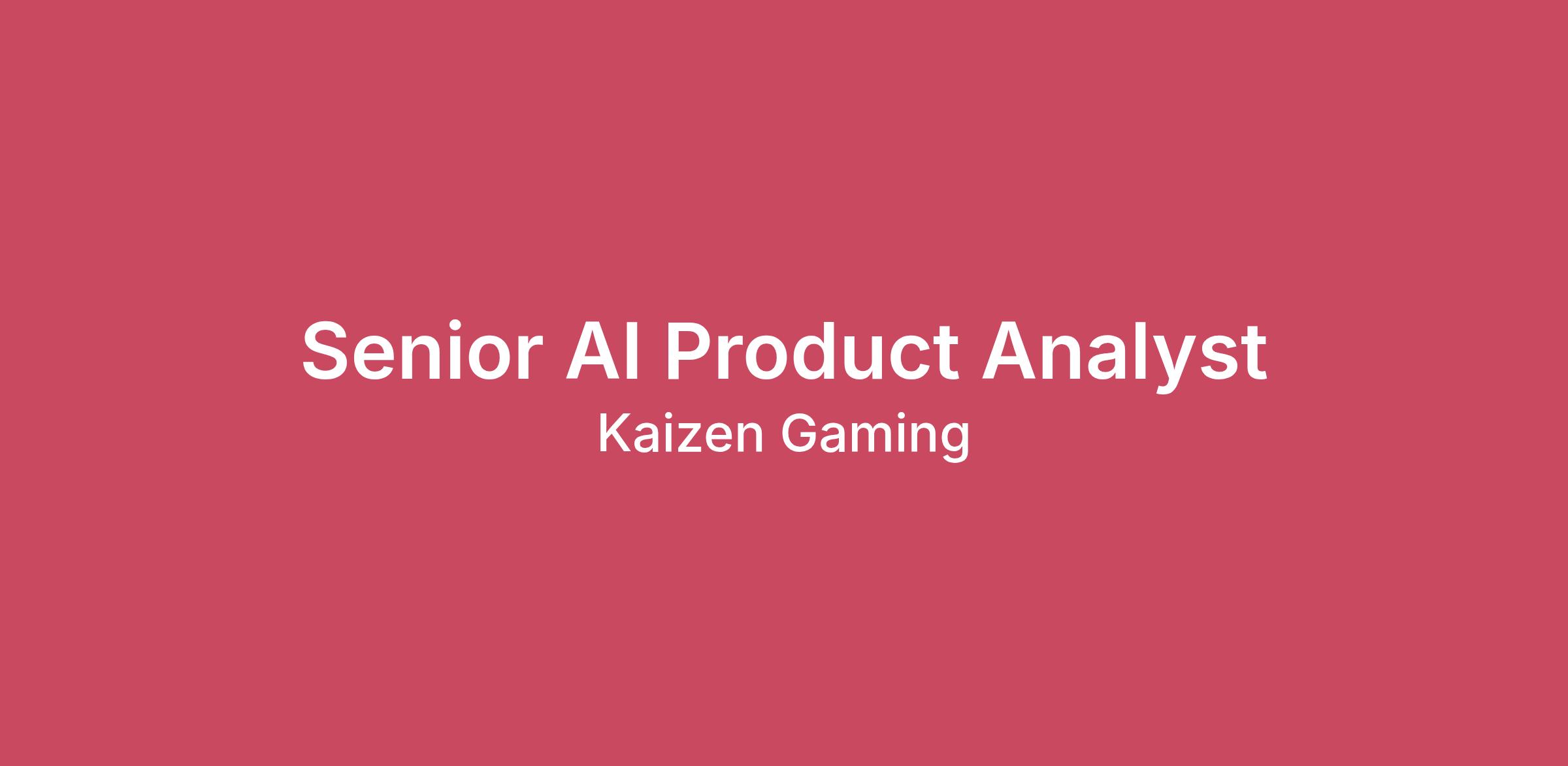 Kaizen Gaming is seeking a Senior AI Product Analyst to join our team of AI experts. We leverage AI to accelerate growth and enhance the customer journey, creating personalized experiences and "wow" moments that set new standards for engagement and satisfaction. Become a Driving Force in AI Product Success.