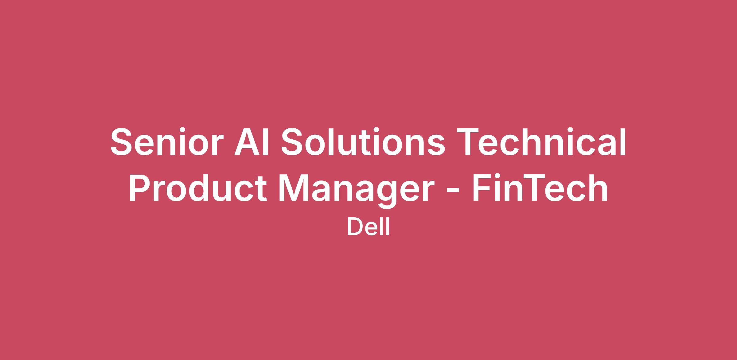 AI Product Management at Dell is a fast‑paced environment where innovative thinking is prized. Our team focuses on defining and delivering differentiated products and solutions that enable customers to adopt and scale AI with confidence. We lead products from strategy and planning through production, release, and continuous improvement—working cross‑functionally to ensure alignment across engineering, solutions, ecosystem partners, and go‑to‑market teams.Join us to do the best work of your career and make a profound social impact as a Senior Technical Product Manager – AI ISV Partner Program (FinTech) on our AI Solutions and Ecosystem team at Dell Technologies, located in Hopkinton, MA or Austin/Round Rock TXWhat You’ll AchieveAs a Senior Technical Product Manager for the AI ISV Partner Program – FinTech, you will own the strategy, evolution, and execution of Dell’s AI ecosystem for financial services and FinTech customers. This role blends deep industry domain knowledge, AI platform strategy, and partner ecosystem leadership.You will define and prioritize AI use cases across the FinTech landscape, identify ecosystem gaps, guide ISV partner strategy, and serve as a trusted technical and business interface to FinTech customers. Your work will directly shape how Dell enables AI adoption across banks, payment providers, insurers, capital markets, and emerging FinTech innovators.You Will:Establish Dell’s vision for enabling financial services customers with AI across regulated and high‑scale environments Own and prioritize FinTech AI use‑case and workloads spanning fraud, risk, payments, capital markets, and GenAI use cases Identify portfolio gaps and guide FinTech ISV partner strategy, including prioritization, onboarding, and ecosystem investments Engage directly with FinTech and financial services customers, translating business and regulatory needs into actionable priorities Track industry and regulatory trends to identify new opportunities and keep Dell’s FinTech AI ecosystem ahead of market demand Lead cross‑functional for execution across engineering, solutions, partner enablement, validation, and GTM teams Take the First Step Toward Your Dream CareerEvery Dell Technologies team member brings something unique to the table. Here’s what we’re looking for with this role:Essential Requirements8+ years of experience in technical product management, AI platforms, or ecosystem strategy, with significant FinTech or financial services experience Strong understanding of how financial institutions and FinTech companies operate, including regulatory, risk, and scalability considerations Deep knowledge of AI/ML workloads and architectures used in financial services Proven experience defining use case frameworks, portfolio strategy, and partner ecosystems Demonstrated ability to engage directly with customers at a technical and business level Excellent communication and executive level presentation skills Desirable RequirementsBachelor’s degree in Computer Science, Engineering, Finance, or related field; advanced degree preferred. Experience shaping AI solutions for highly regulated industries Experience working with FinTech ISVs, financial data platforms, or regulated enterprise software ecosystems, Dell AI platforms or comparable AI infrastructure ecosystems (NVIDIA, hyperscalers, enterprise data platforms) Compensation Dell is committed to fair and equitable compensation practices. The salary range for this position is $186,150.00 - $240,900.00 Benefits and Perks of working at Dell Technologies Your life. Your health. Supported by your benefits. You can explore the overall benefits experience that awaits you as a Dell Technologies team member — right now at MyWellatDell.comWho we areWe believe that each of us has the power to make an impact. That’s why we put our team members at the center of everything we do. If you’re looking for an opportunity to grow your career with some of the best minds and most advanced tech in the industry, we’re looking for you.Dell Technologies is a unique family of businesses that helps individuals and organizations transform how they work, live and play. Join us to build a future that works for everyone because Progress Takes All of Us.Dell Technologies is committed to the principle of equal employment opportunity for all employees and to providing employees with a work environment free of discrimination and harassment. Read the full Equal Employment Opportunity Policy here.