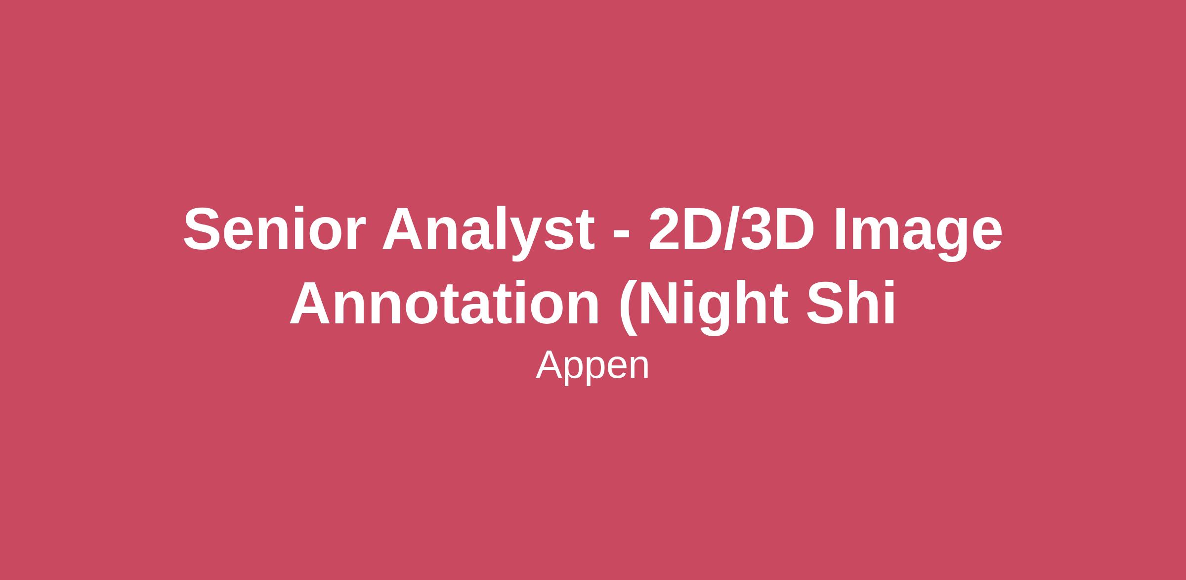 Senior Analyst - 2D/3D Image Annotation (Night Shi