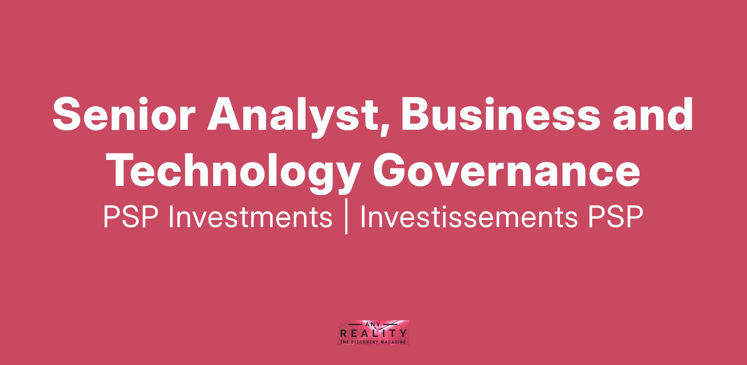 As a Senior Analyst, Business and Technology Governance (BTG), you’ll:
