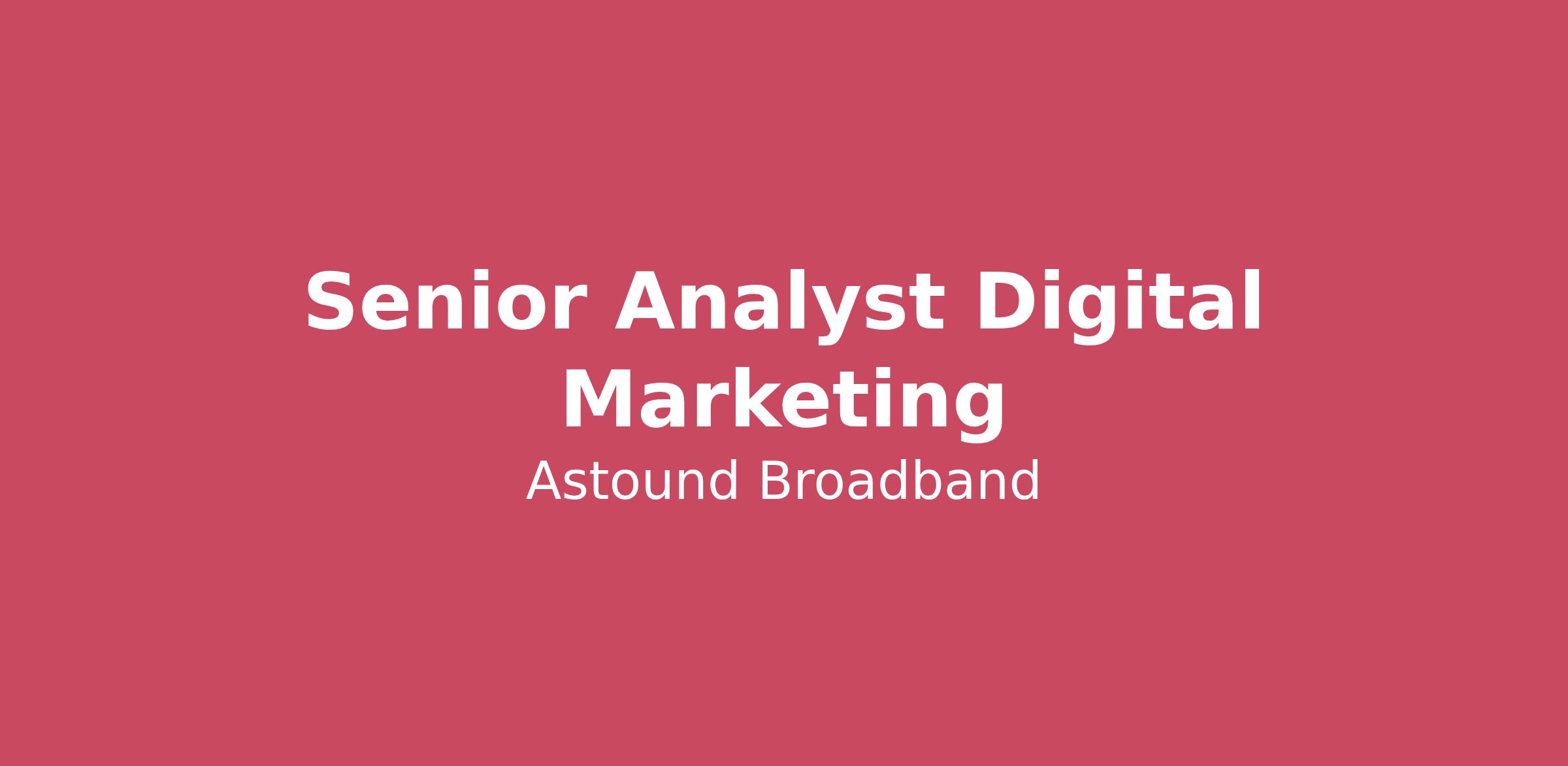 Astound is a leading provider of internet, WiFi, mobile, and TV services, dedicated to connecting communities and empowering lives through innovative technology. We also keep businesses connected with dependable fiber infrastructure and internet solutions backed by award-winning service, helping organizations thrive in an increasingly connected world.At the forefront of digital transformation, we continuously evolve our offerings to meet the dynamic needs of our customers—delivering reliable connectivity and groundbreaking digital experiences.Our commitment to excellence extends beyond infrastructure. We invest in our people through personalized training, coaching, and a supportive work environment that fosters growth and opportunity. Employees are empowered to represent a superior telecommunications company while making a meaningful impact in the communities we serve.We offer a robust benefits package that includes rewards, recognition programs, and employee discounts—ensuring our team members are supported in both their professional and personal journeys. At Astound, we believe in creating astounding possibilities for everyone, everywhere.A Day in the Life of the Senior Analyst Digital Marketing:The Senior Digital Marketing drives performance analytics. This role focuses on turning data into actionable insights to improve digital marketing efforts and drive business growth. The Analyst reports to the Vice President leading campaign performance analytics, data interpretation, and reporting, while also supporting budget forecasting, and agency coordination.Reporting & Analysis (70%) Partner with internal stakeholders to define benchmarks and refine KPIs and measurement plans with business goals. Pull and analyze raw data to uncover insights and guide media strategy. Collaborate with internal teams and agencies to streamline reporting and data flows. Proactively run reporting, BI, and measurement outputs to analyze recommended actionable optimizations, dashboard evolution, and wider scale synergies. Monitor performance trends and anomalies; identify root causes. Interpret statistical models to inform strategy. Present actionable insights clearly to both technical and non-technical audiences in multiple formats: Excel, presentation, and verbal/written communications. Paid Media Support (20%) Use historical and trend data to design campaigns that meet sales goals. Forecast budgets and performance using predictive modeling. Evolve testing plans to uncover new opportunities and drive innovation. Audit campaigns for performance across audiences, creative, and tactics. Support campaign execution and collaborate across teams where needed. Analyze user behavior to improve acquisition and cost efficiency. Administration/Other (10%) Maintain documentation of historical testing, innovations, and best practices. Manage billing and invoices accurately. Other duties as assigned What You Bring to the Table: Education: High school diploma or equivalent required Bachelor's degree in data science, Statistics, Economics, Business Analytics, or Computer Science, is preferred MBA or analytics certifications are a plus. Experience: 4-7 years of Data Science, Marketing Analytics or Statistics experience is required. 3-5 years of data reporting & visualization (Looker, Tableau, Alteryx, GA4, BigQuery, etc.). 3-5 years in digital advertising platforms (Google Ads, Meta, LinkedIn Ads, programmatic platforms, etc.) 3+ years with testing in paid media or digital marketing. Experience using AI to automate or enhance analysis is preferred. Knowledge, Skills and Abilities: Strong skills in Excel, Google Marketing Platform, Google Ads, and Google Analytics. Proven ability to manage multiple projects in a fast-paced environment, meeting deadlines, and business objectives. Ability to distill data and bring forward actionable insights. Excellent writing, communication, and organizational skills. Strong attention to detail and customer service mindset. Agency & Telco Experience a plus. Familiarity with CRM /DMP systems and other ad platforms is a plus. We're Proud to Offer a Comprehensive Benefits Package Including:401k retirement plan, with employer matchInsurance options including: medical, dental, vision, life and STD insurancePaid Time Off/Vacation: Starting at 80 hours per year, and increases based on tenure with the organizationFloating Holiday: 40 hours per yearPaid Holidays: 7 days per yearPaid Sick Leave: Astound allows a number of paid sick hours per calendar year and varies based on state and/or local lawsTuition reimbursement programEmployee discount program*Benefits listed above are for regular full-time positionBase Salary: The base salary range in {insert state} for this position is $85,000- $1115,000 annually, plus opportunities for bonus, benefits and commission, if applicable. The base pay range represents the low and high end of the hiring range for this job. Actual pay will vary and may be above or below the range based on various factors including but not limited to relevant skills, experience, and capabilities.Our Mission Statement:* Take care of our customers* Take care of each other* Do what we say we are going to do* Have funAstound is proud to be an Equal Opportunity Employer, and we are dedicated to cultivating an inclusive workplace where employees feel valued, respected, and empowered. Discrimination of any kind has no place here. We are committed to providing equal opportunities for all employees and applicants, regardless of race, color, religion, sex, gender, pregnancy, childbirth and related conditions, national origin, age, physical and mental disability, marital status, sexual orientation, genetic information, military or veteran status, citizenship, or other status or characteristic protected by applicable law. We strive to create a culture that celebrates our differences and promotes fairness and inclusivity in all aspects of our business.