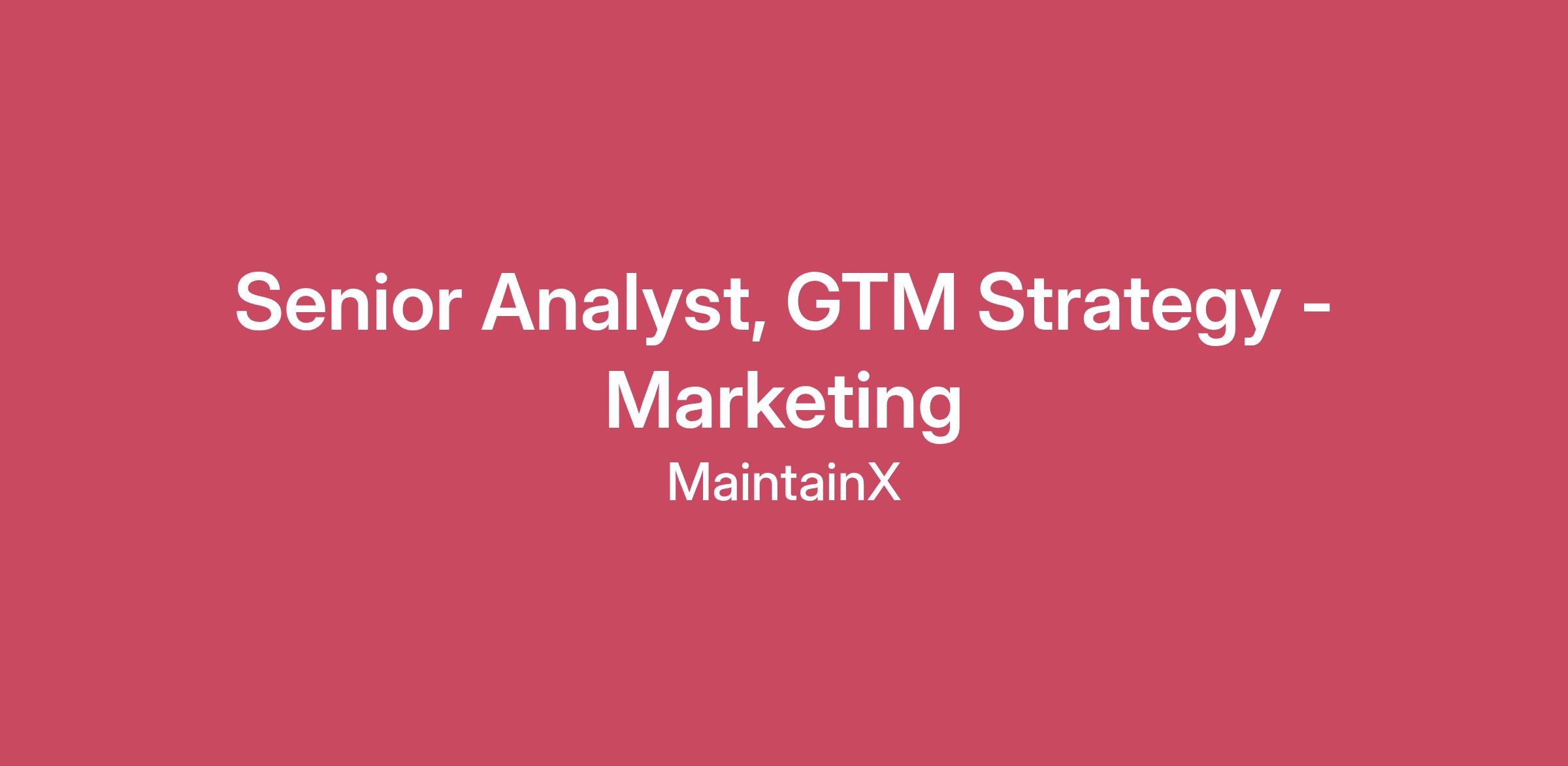 MaintainX is the world's leading Asset and Work Intelligence platform for industrial and frontline environments. We are a modern IoT-enabled cloud-based tool for reliability, safety, and operations on physical equipment and facilities. MaintainX powers operational excellence for 13,000+ businesses including Duracell, Univar Solutions Inc., Titan America, McDonald's, Brenntag, Cintas, Xylem, and Shell. We recently completed a $150 million Series D funding round, bringing our total funding to $254 million and valuing the company at $2.5 billion. As the Sr. Analyst, GTM Strategy - Marketing, you’ll be the analytical engine driving how our Growth Marketing team invests, scales, and wins. You'll own the forecasting models, performance reporting, and analytical frameworks that drive how we allocate budget, measure ROI, and scale our demand generation engine. This role is purpose-built for someone coming from consulting or investment banking who wants to apply elite analytical skills to high-impact growth problems at a fast-scaling B2B SaaS company. What you’ll do: Own Marketing Forecasting. Build and maintain financial-grade forecasting models for pipeline, revenue contribution, conversion rates, and channel performance. Your models will inform quarterly/yearly planning and budget allocation decisions. Design Performance Reporting. Create executive dashboards and weekly/monthly reports that give leadership clear visibility into what's working, what's not, and why. Think investor-ready metrics, not vanity numbers. Drive Cross-Functional Analysis. Partner with Paid Media, SEO, Lifecycle, Product Marketing, and Sales teams to answer critical questions: Which channels drive the highest quality pipeline? Where should we double down? Solve Ambiguous Problems. Tackle ad hoc strategic questions from leadership. "Why did MQL volume drop last month?" "Why are we struggling in one segment vs. another?" You’ll break down the problem, analyze the data, and deliver the insights. About you: 4-year bachelor's degree in a quantitative field (Economics, Finance, Engineering, Mathematics, Statistics, Computer Science, or similar). Bonus points if you have a background in athletics or other competitive pursuits — we value the discipline, resilience, and drive that come with playing to win. 3–4 years at a top-tier consulting firm or investment bank. You've developed sharp problem-solving instincts, breaking down ambiguous challenges, structuring analyses under tight timelines, and delivering recommendations that hold up under scrutiny from senior stakeholders. Familiarity with SaaS Business Models. You understand how enterprise B2B SaaS organizations build, market, and sell their technology solutions. Exceptional analytical and modeling skills. You’ve built complex financial models in Excel/Google Sheets from scratch—multi-scenario forecasts, sensitivity analyses, and dynamic assumption frameworks. You think quantitatively by default and excel at structuring ambiguous problems into clear, logical analyses. Marketing experience. You may not be a CMO (yet), but you can navigate your way around the central pillars of marketing: Demand Gen, Product Marketing, Brand, Communications, etc. and can speak articulately about the channels within each that create pipeline. Strong communication skills. You've created executive-level presentations and memos that distill complex analyses into clear, actionable insights. You know how to tell a story with data. You play to win. Competition motivates you, and you thrive in high-performance environments where the bar is always rising. You’re innately curious. You are always asking “why,” testing new ideas, and digging deeper than what’s on the surface. You’re relentless about improvement. “Good enough” isn’t good enough when there’s a chance to optimize. You’re a true team player. You bring energy, resilience, and collaboration to help the team succeed. Above all, you take ownership. You don’t just execute campaigns — you care about driving real business impact. What’s in it for you: Competitive salary and meaningful equity opportunities. Healthcare, dental, and vision coverage. 401(k) / RRSP enrolment program. Take what you need PTO. A Work Culture where: You’ll work alongside folks across the globe that reflect the MaintainX values, Smart Humble Optimist. We believe in meritocracy, where ideas and effort are publicly celebrated. About us: Our mission is to deliver one platform for maintenance, repair & operations teams to keep the physical world running. We believe the greatest asset in any organization is the people. That’s why we built an intuitive, mobile-first solution to help boost productivity and collaboration across teams and locations. MaintainX is committed to creating a diverse environment. All qualified applicants will receive consideration for employment without regard to race, colour, religion, gender, gender identity or expression, sexual orientation, national origin, genetics, disability, age, or veteran status.