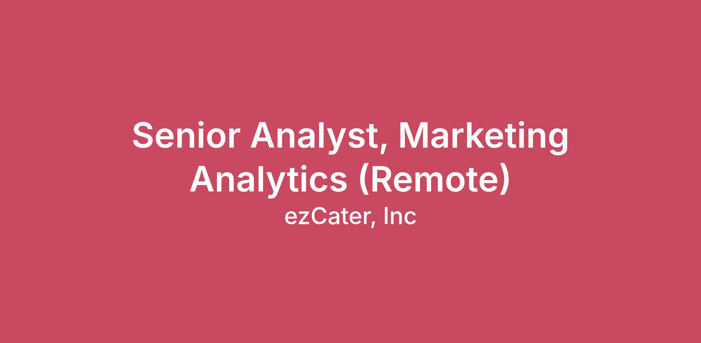 ezCater is the leading food for work technology company in the US, connecting anyone who needs food for their workplace to over 100,000 restaurants nationwide. For workplaces, ezCater provides flexible and scalable solutions for everything from recurring employee meals to one-off meetings, all backed by 24/7 customer service with real humans. ezCater also enables companies to manage their food spend in a single, customizable platform. For restaurant partners, ezCater helps them grow their business by bringing them more orders and new high-value customers. We're backed by top investors including Insight, Iconiq, Lightspeed, GIC, SoftBank, and Quadrille.Join us as a Senior Analyst in our thriving Marketing Analytics team, where you'll unleash the power of data to fuel innovation. Collaboration is at the heart of what we do, bridging Marketing, Analytics, Data Engineering, Customer Service, and Product teams. You'll be the trusted partner of a skilled peer group, playing a pivotal role in surmounting complex analytical challenges that fortify our go-to-market strategies. This role isn't just about data; it's about driving innovation and making a tangible impact. Here, you'll shape our customer strategy using cutting-edge marketing tech. Data is our compass, guiding every decision, especially within our marketing endeavors. If you're passionate about pioneering retention strategies, amplifying performance measurement, establishing impactful reporting, conducting A/B tests, and quantifying the influence of our marketing initiatives on customer order activity, we're excited to connect with you. Your journey to shaping the future starts here! What You'll Do: Collaborate closely with senior leaders on exciting business problems, actively shaping the team's strategic direction and focus Elevate customer personas and segmentation for personalized marketing, deepening our understanding of target audiences Analyze retention and ezRewards Loyalty Program performance, identifying growth opportunities and implementing action plans with cross-functional teams Develop insights through in-depth analysis, models, and reports, uncovering new marketing growth opportunities and informing business performance strategies Lead the evolution of our Marketing team's experimentation process and documentation, fostering a structured framework for innovation Enhance data visualization tools for informed decision-making and empower Marketing teammates Utilize data-driven analyses, A/B tests, and statistical models to uncover customer behavior insights and optimize marketing strategies Share marketing domain expertise, acting as a thought leader and mentor to peers for collaborative growth What You Have: 3+ years of relevant quantitative or technical analysis experience, preferably in marketing or e-commerce Strong SQL skills for data manipulation and analysis, coupled with experience in statistical modeling (R or Python preferred) Proficiency in marketing attribution methods, return on ad spend, and experimental test design (A/B testing) Familiarity with diverse marketing tactics including optimizing customer retention through strategies such as Email, SMS, Push, SEO/SEM, Direct Mail, and more Knowledge of modern data exploration and visualization tools like Snowflake, Tableau, Looker, Google Data Studio, or PowerBI, and proficiency in Google Analytics or similar digital analytics platforms Effective communication skills to convey data insights across different audiences Independent worker with cross-functional collaboration ability and adeptness in presenting insights to stakeholders Strong organizational skills, time management, and multitasking capability Ability to travel up to 5 days per quarter for Together Weeks, team gatherings and other events, when applicable. The national total target cash compensation range for this position, including base salary and bonus target, is $119,670-$145,743 annually.* *Please note: Final offer amounts are determined by multiple factors, including prior experience, expertise and region & may vary from the amount above. This range does not represent additional compensation benefits (such as equity, 401K or medical, dental or vision insurance). ezCater does not sponsor applicants for work visas or legal permanent residence. What You’ll Get from Us: You’ll get a terrifically compelling experience in an innovative, high performing environment. You’ll get to work with engaged and passionate colleagues on challenging and impactful projects. You will have opportunities to grow in your career, and work in a place that values work/life harmony. Oh, and you’ll get all this: Market competitive salary, stock options that you’ll help make worth a lot, 12 paid holidays, flexible PTO, 401K with ezCater match, health/dental/FSA, long-term disability insurance, mental health and family planning resources, remote-hybrid work from our awesome Boston office OR your home OR a mixture of both home and office, a tremendous amount of responsibility and autonomy, wicked awesome co-workers, Relish (and many more goodies) when you’re in our office, and knowing that you helped transform the food for work space. ezCater is an equal opportunity employer. We embrace humans of every background, appearance, race, religion, color, national origin, gender, gender identity, sexual orientation, age, marital status, veteran status, and disability status. At the same time, we do not employ jerks, even brilliant ones. Following a conditional offer of employment, ezCater may require a background check. For information on how ezCater collects and uses job applicants' personal information, please visit our Job Applicant Privacy Policy. #BI-Remote
