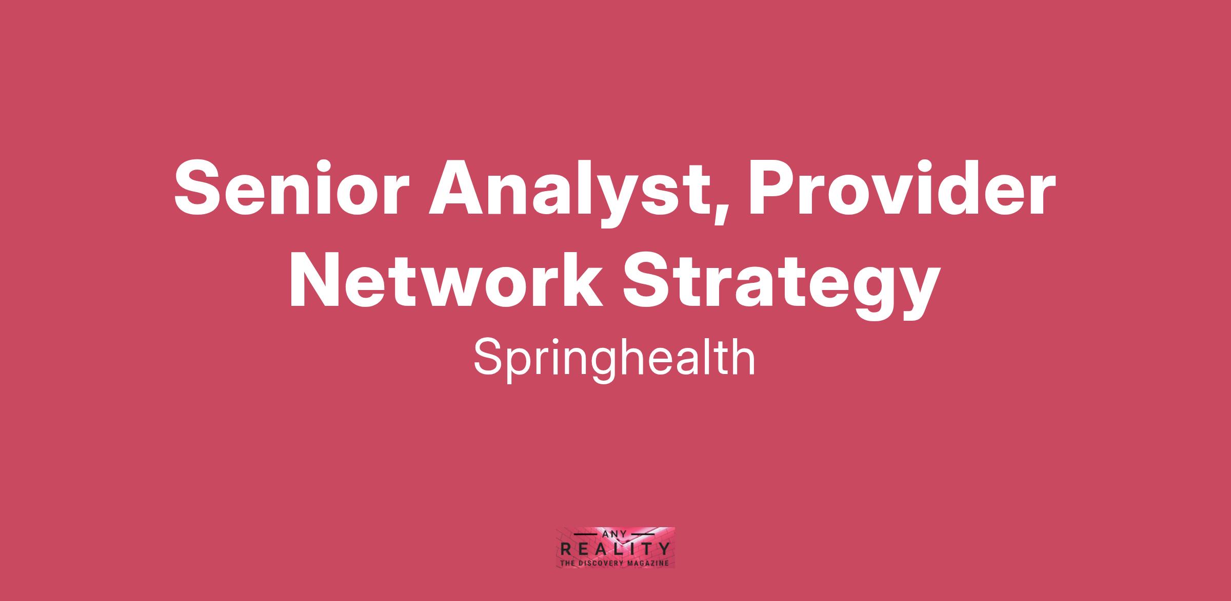 Reporting to Associate Director, Network Strategy & Analytics, the Sr. Analyst, Provider Network Strategy will own predictive modeling, strategic planning, and process improvement to ensure our provider network is positioned for long-term success.