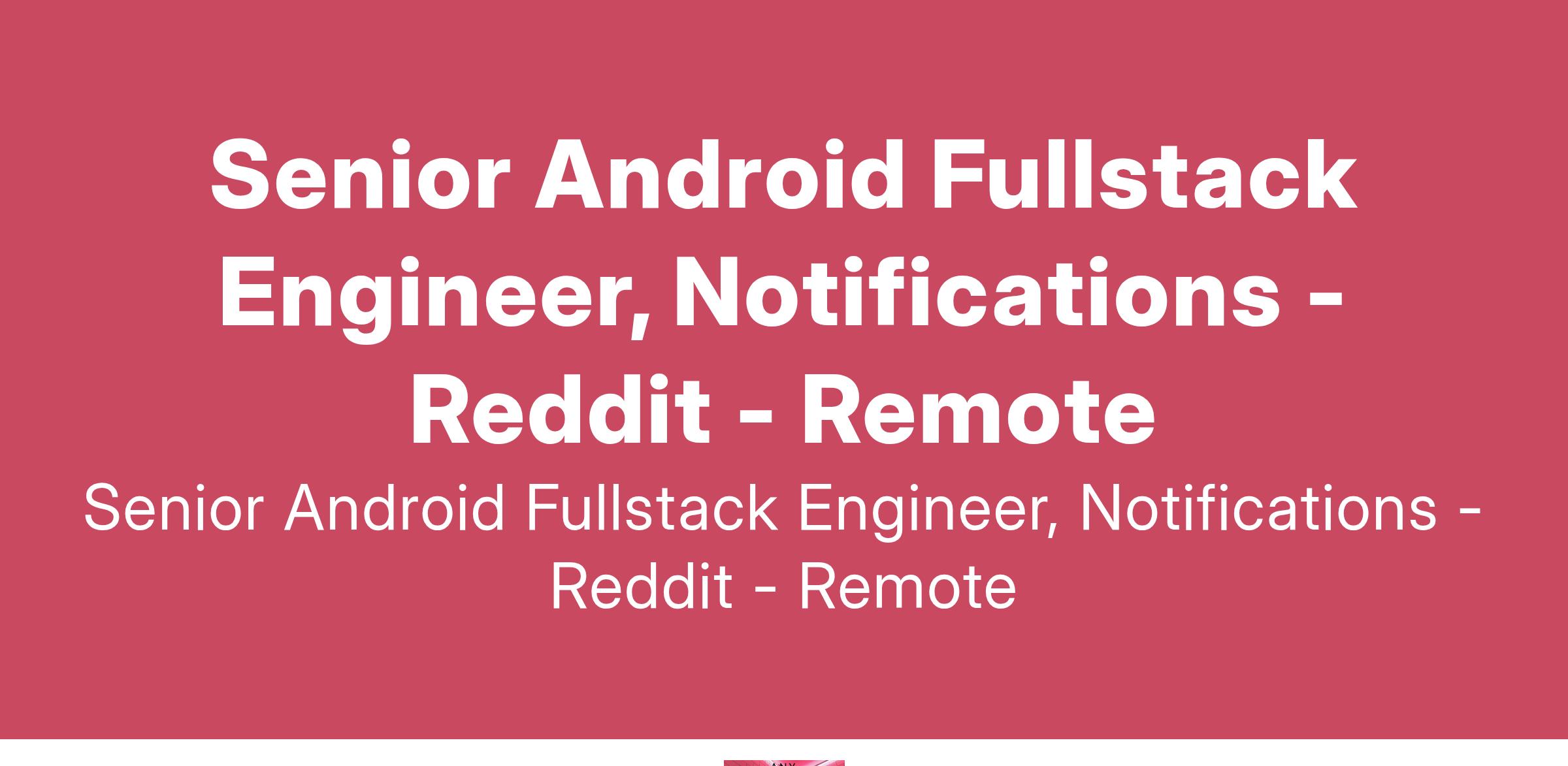 As a Senior Android fullstack engineer, you’ll design, build and scale products within notifications and emails, increasing the reach of notifications and improving the end user experience. You’ll get ownership over our client experiences while developing expertise in our backend systems. You’ll have an opportunity to work on impactful product iterations and with cross-functional teams such as product, Machine Learning and Data Science. With our small focused team, your work will directly impact hundreds of millions of users around the world. Join us and help build the future of Reddit!