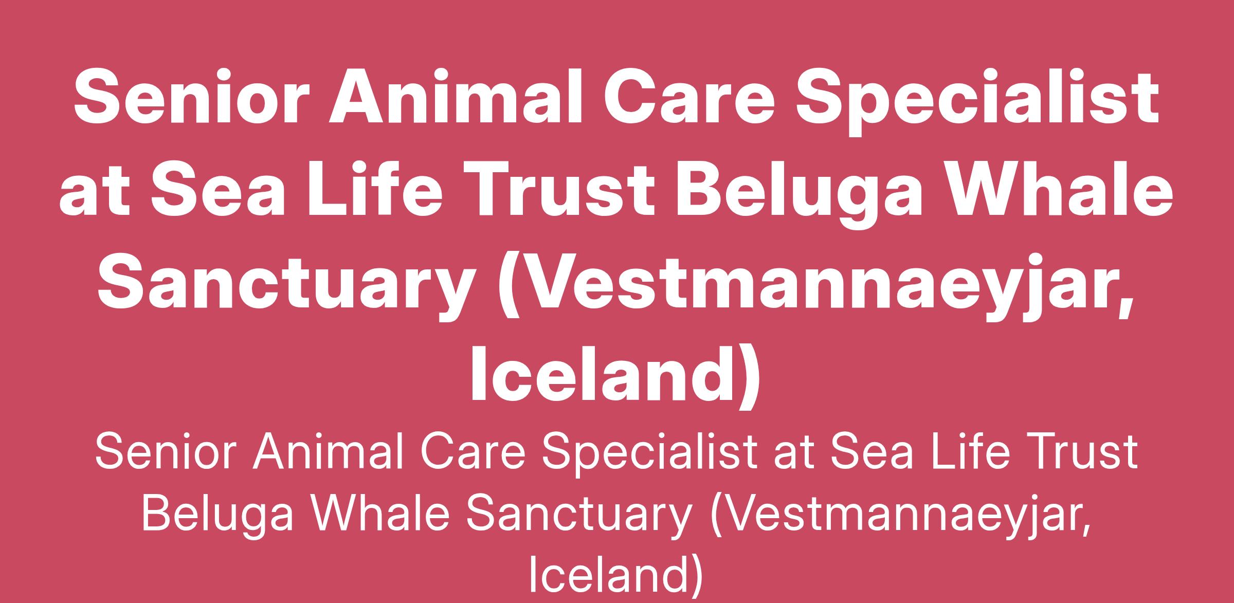 Senior Animal Care Specialist at Sea Life Trust Beluga Whale Sanctuary (Vestmannaeyjar, Iceland)
