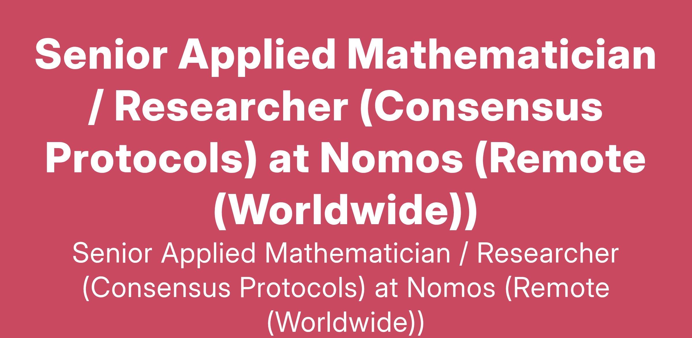 Senior Applied Mathematician / Researcher (Consensus Protocols) at Nomos (Remote (Worldwide))