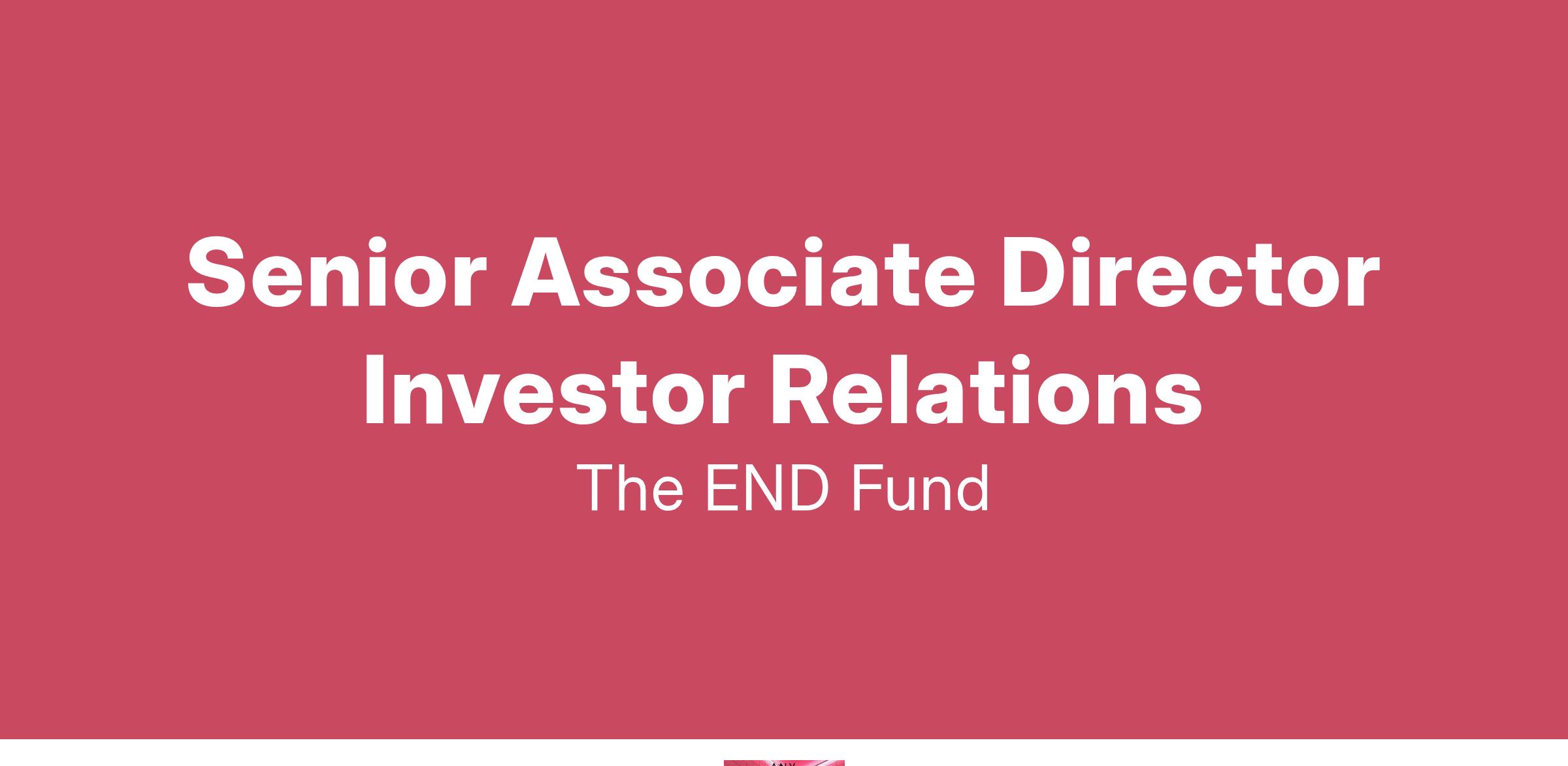 The Investor Relations team is the END Fundâs fundraising team, responsible for identifying, mobilizing, and nurturing meaningful and impactful partnerships to advance the END Fundâs mission to end neglected tropical diseases. Driven by the transformative power of collaborative philanthropy, the team works alongside a consortium of investors and champions to help harness and promote funding opportunities for historically excluded communities.