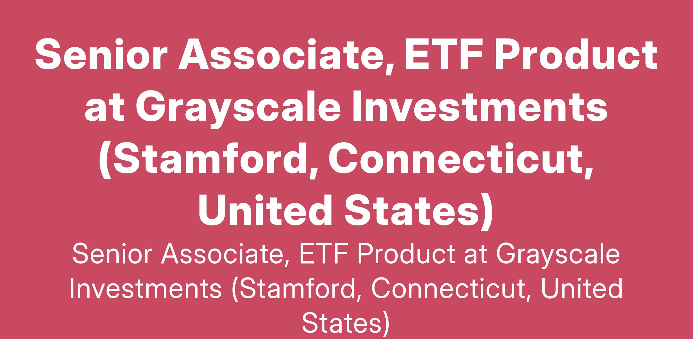 Senior Associate, ETF Product at Grayscale Investments (Stamford, Connecticut, United States)