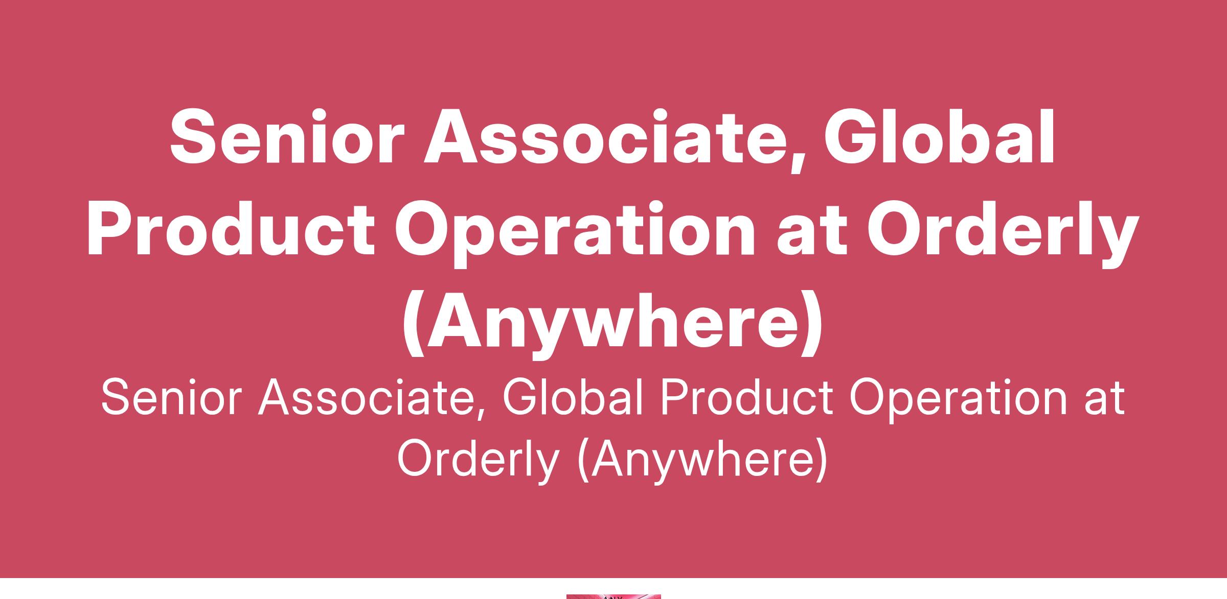 Senior Associate, Global Product Operation at Orderly (Anywhere)