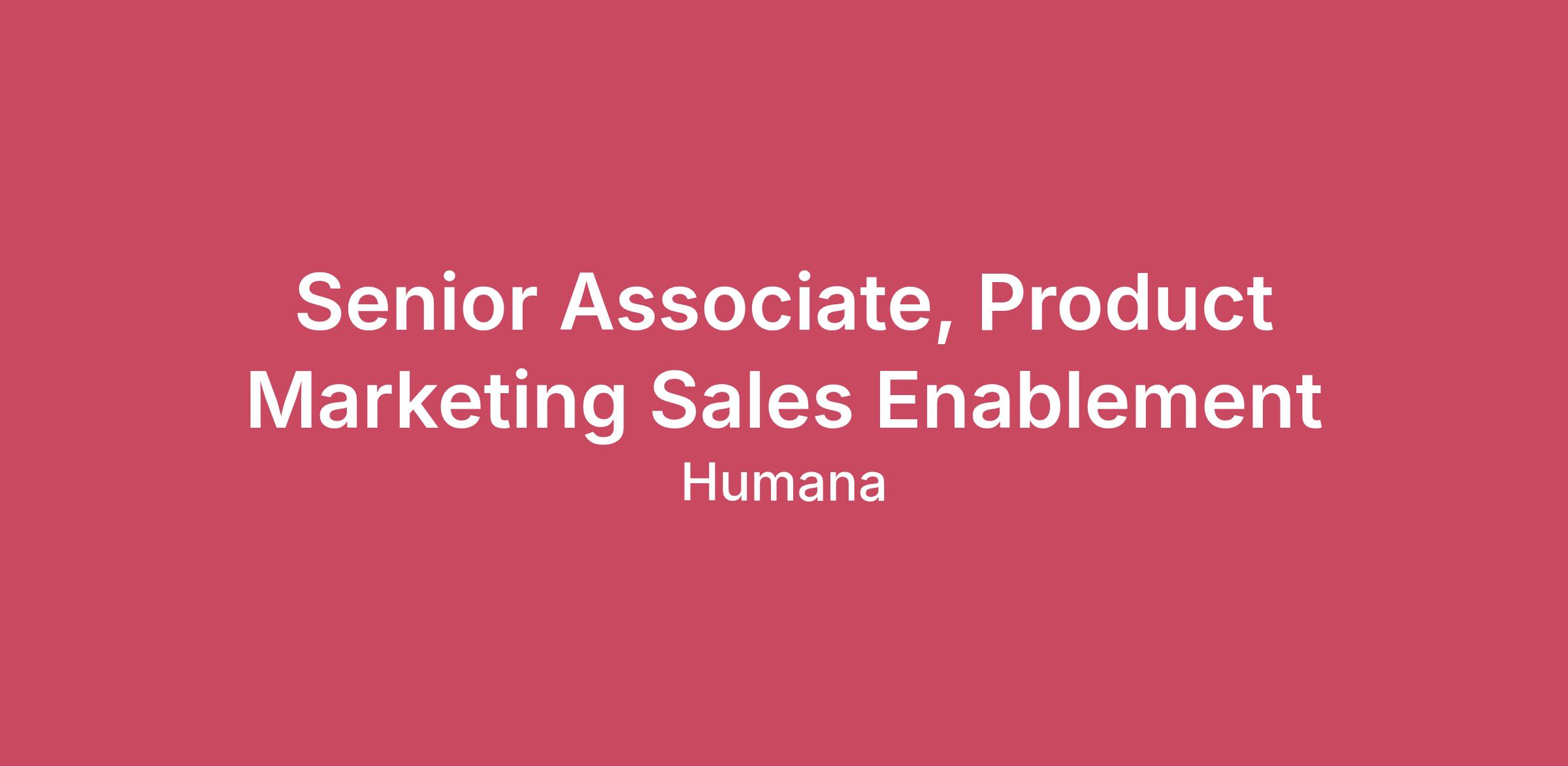 Become a part of our caring community and help us put health first Does the challenge of transforming a $1 Trillion+ industry while enhancing the lives of millions of people excite you? Are you a strategic marketing professional with a passion for helping people achieve their best health? Do you have expertise across sales enablement with a focus on health insurance products? If so, you may be a fit for Humana's Senior Associate, Product Marketing Strategy (Sales Enablement).The Senior Associate, Product Marketing Strategy (Sales Enablement) sits within the Marketing Organization as part of the broader Enterprise Growth team and partners closely with the Agent Marketing team and key cross‑functional groups—including Consumer Insights & Analytics, Lifecycle Marketing, Marketing Operations, and Marketing Data & Technology. This role contributes to shaping and advancing sales enablement strategies that drive growth and enhance the agent and member experience across Medicare Advantage (MA) and Medicare Advantage Prescription Drug (MAPD), Special Needs Plans (D‑SNP, I‑SNP, C‑SNP), Prescription Drug Plans (PDP), and Medicare Supplement products. You will collaborate closely with Agent Marketing and Market Point teams to ensure sales channel partners are equipped with clear, compliant, and high‑impact tools and resources that empower agents and drive informed member acquisition, activation, engagement, and retention.The ideal candidate possesses strong Medicare domain expertise, is knowledgeable about the differences between MA, MAPD, PDP, and Medicare Supplement selling models, and can deliver actionable sales enablement solutions for both internal and external channel partners.Role ResponsibilitiesAs a key member of Humana's Product Marketing Strategy team, you will play a pivotal role in shaping and advancing enterprise sales enablement strategies. In close partnership with the Agent Marketing Learning & Development organization, you will develop comprehensive enablement solutions that equip and empower agents across a diverse product portfolio while ensuring alignment with business priorities and channel‑specific needs, including:o Medicare Advantage (MA) and Medicare Advantage Prescription Drug (MAPD) Plans.o Special Needs Plans (SNP), including D‑SNP, I‑SNP, and C‑SNP.o Prescription Drug Plans (PDP).o Medicare Supplement (Med Supp) Products.o Channel‑specific requirements across internal and external audiences (field, telephonic, broker, digital, and third‑party agents).Drive growth initiatives across AEP, OEP, SEP, and year‑round Med Supp and PDP sales cycles.Support the creation, enhancement, and ongoing maintenance of compliant sales enablement materials, including brochures, presentations, FAQs, talking points, and toolkits for MAPD, PDP, and Med Supp products.Collaborate cross‑functionally with Agent Marketing, Product, Sales, Brand, and Compliance teams to ensure all content is accurate, aligned, and market‑ready.Leverage VOC insights and field feedback to continuously refine tools, resources, and training materials to improve agent performance and customer experience.Assess the effectiveness of enablement materials to inform future development.Partner with Agent Marketing to monitor competitive intelligence, product positioning, and market insights, supporting the creation of competitive comparison tools and strategies for MA, MAPD, PDP, and Med Supp portfolios.Use your skills to make an impact QualificationsRequired:Bachelor's degree in Marketing, Business, Healthcare Administration, or related field.5+ years of experience in sales enablement, Medicare marketing, or product marketing.Experience supporting sales teams or channel partners, including providing enablement resources, training, and strategic guidance to drive performance and achieve business objectives.Excellent written, verbal, and presentation skills.Strong storytelling skills with the ability to translate complex information into clear, compelling content.Demonstrated working knowledge of:Medicare Advantage Prescription Drug (MAPD), Special Needs Plans (SNP), Prescription Drug Plans (PDP), and Medicare Supplement plans and underwriting.Enrollment periods and selling rules.CMS marketing and communication guidelines.Experience in highly regulated healthcare environments (healthcare, insurance, or similar)Ability to gather and apply feedback from sales teams to improve tools and resources.Demonstrated project management expertise with exceptional attention to detail.Member-first, consumer-centered mindset.Preferred:Health plan or managed care experience, including an understanding of CMS regulations and healthcare marketing compliance standards.Background in training development, instructional design, or onboarding programs.Proficiency with sales enablement platforms and CRM tools (e.g., Salesforce).Additional InformationTo ensure Home or Hybrid Home/Office employees' ability to work effectively, the self-provided internet service of Home or Hybrid Home/Office employees must meet the following criteria:At minimum, a download speed of 25 Mbps and an upload speed of 10 Mbps is recommended; wireless, wired cable or DSL connection is suggestedSatellite, cellular and microwave connection can be used only if approved by leadershipEmployees who live and work from Home in the state of California, Illinois, Montana, or South Dakota will be provided a bi-weekly payment for their internet expense.Humana will provide Home or Hybrid Home/Office employees with telephone equipment appropriate to meet the business requirements for their position/job.Work from a dedicated space lacking ongoing interruptions to protect member PHI / HIPAA informationHumana offers a variety of benefits to promote the best health and well-being of our employees and their families. We design competitive and flexible packages to give our employees a sense of financial security—both today and in the future, including:Health bene