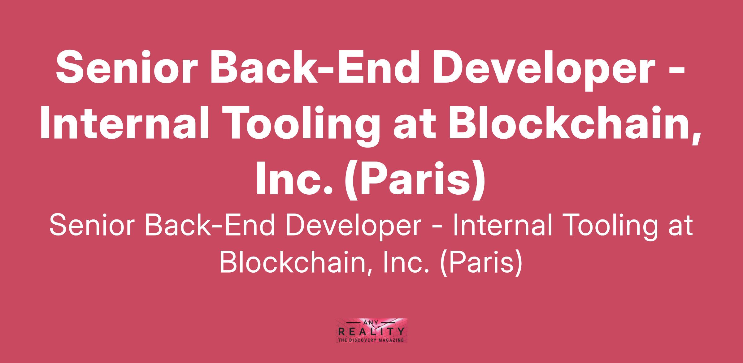 Senior Back-End Developer - Internal Tooling at Blockchain, Inc. (Paris)