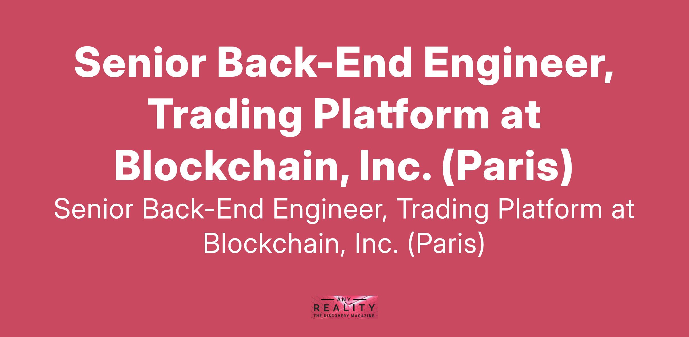 Senior Back-End Engineer, Trading Platform at Blockchain, Inc. (Paris)
